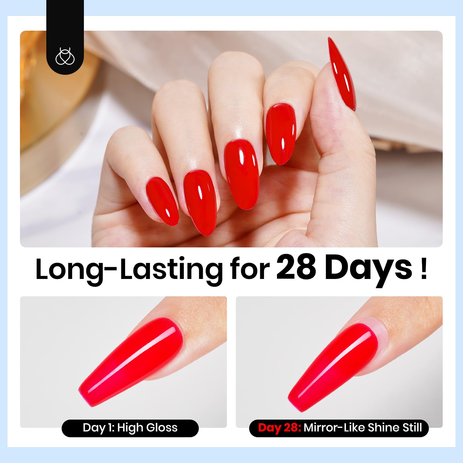Capacity Upgrade: Upgeaded clear top coat gel poish with 20ml capacity, Shining as well. With proper application, it can last for 28+ days with a perfect shine, bringing you a long-lasting mirror-smooth effect healthy and low-odor. No harsh ingredients lead to damaged nails.