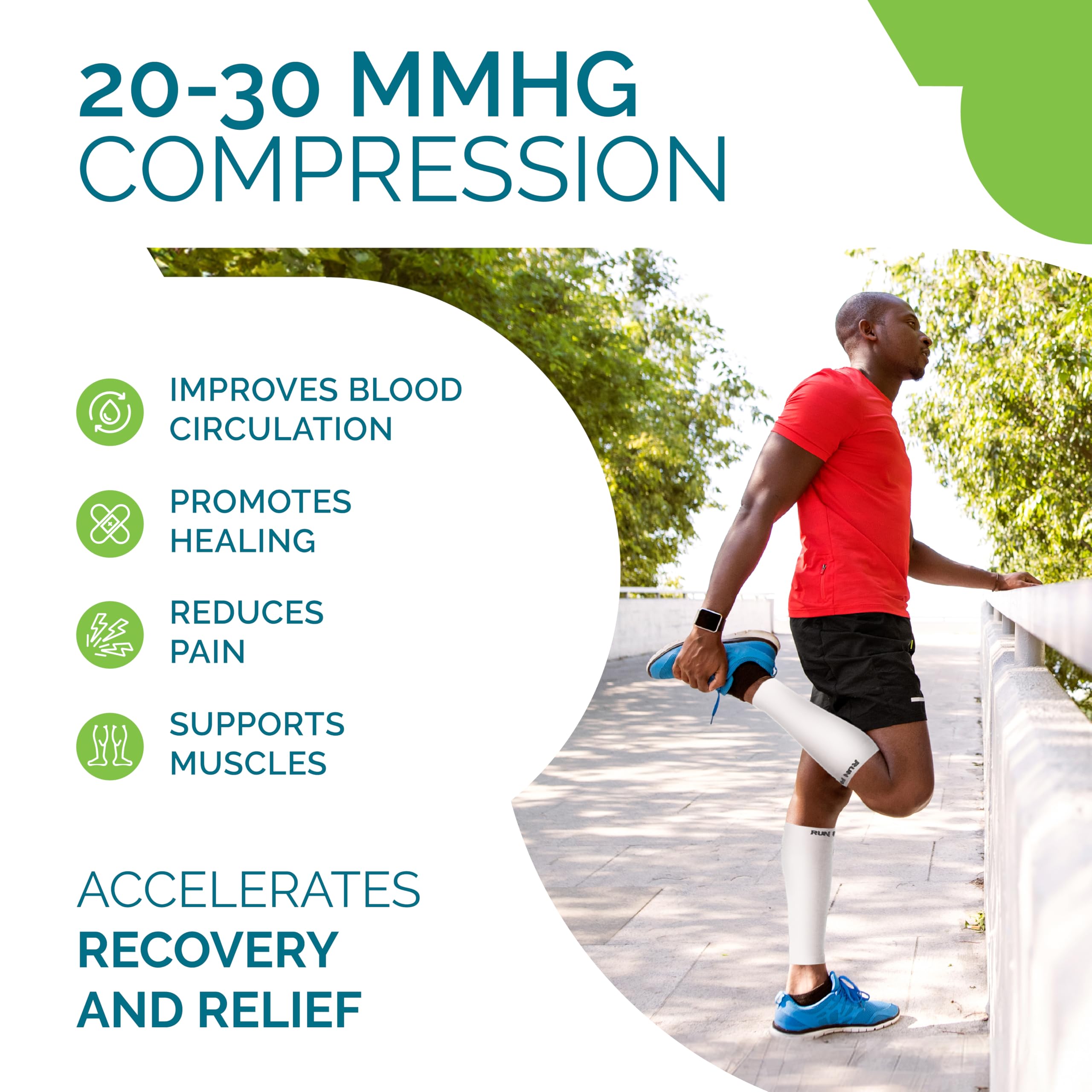 Professional medical compression stockings: The leg wraps have true graduated compression strength of 20-30 mmhg, improving performance while alleviating leg pain, swelling and allowing for faster injury recovery