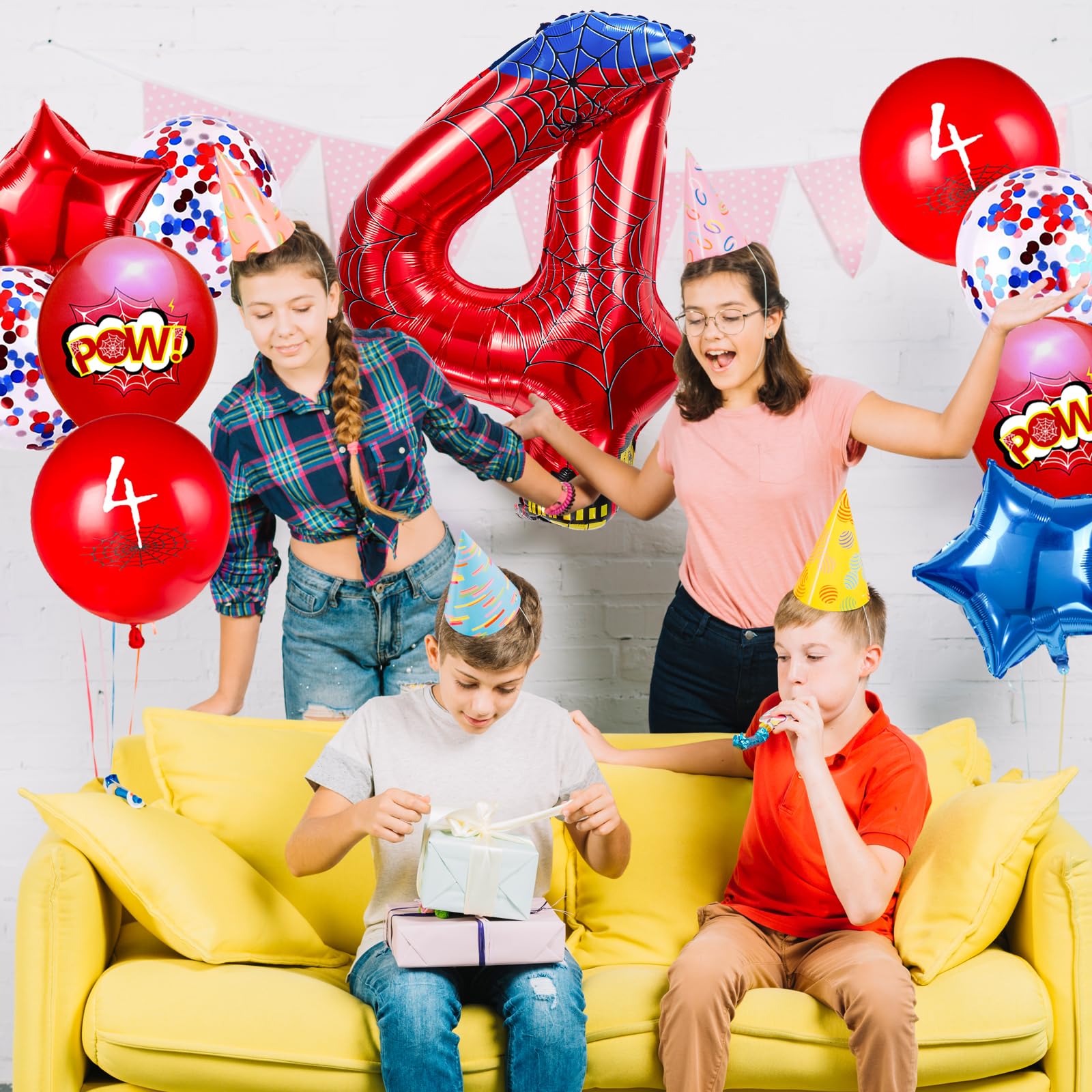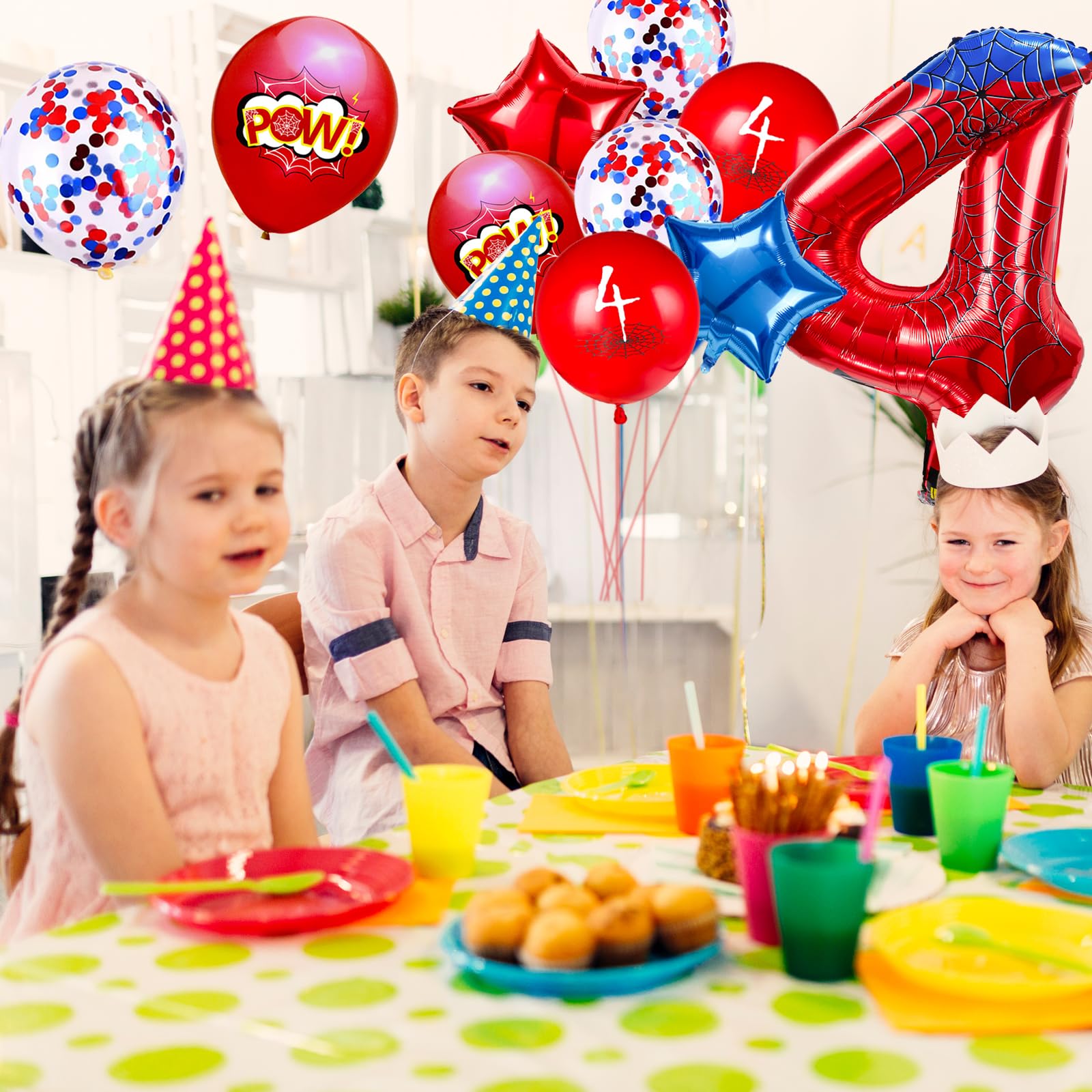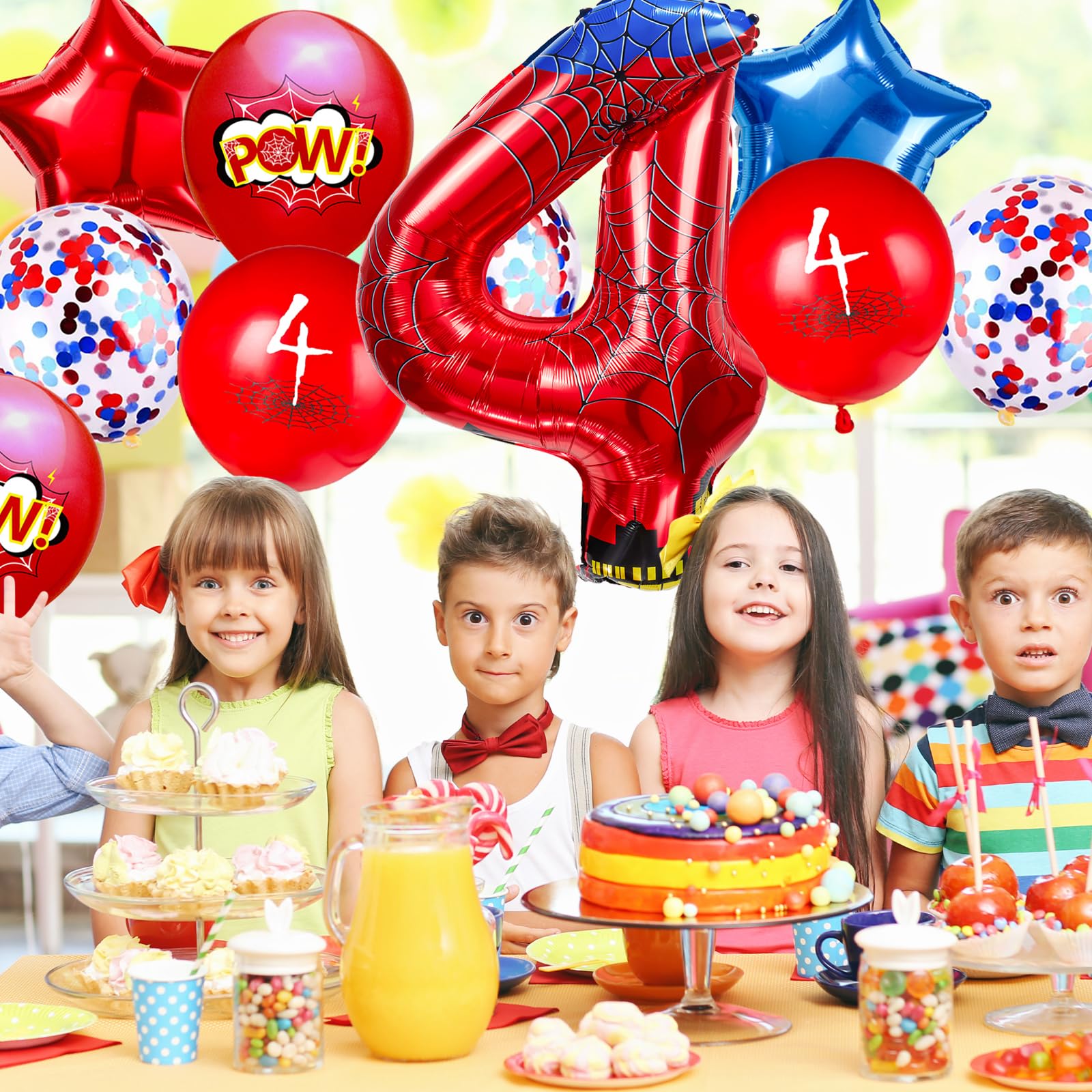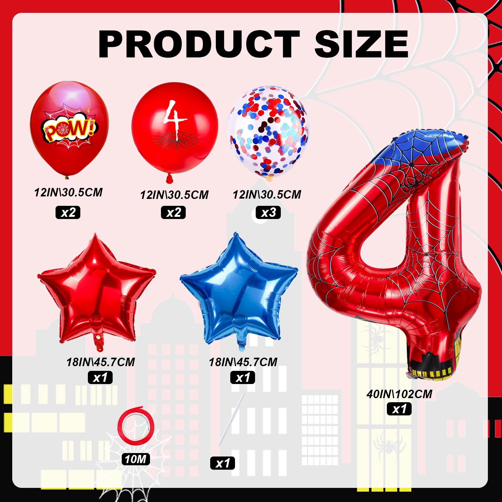 【Ideal Cartoon-Themed Party Decor】Includes 1 red-and-blue spider-design 40-inch balloon, 2 star-shaped balloons, and 7 multicolored balloons (10 pieces total). Latex-free non-toxic formula ensures safe indoor/outdoor use. Long-lasting celebration adornment.