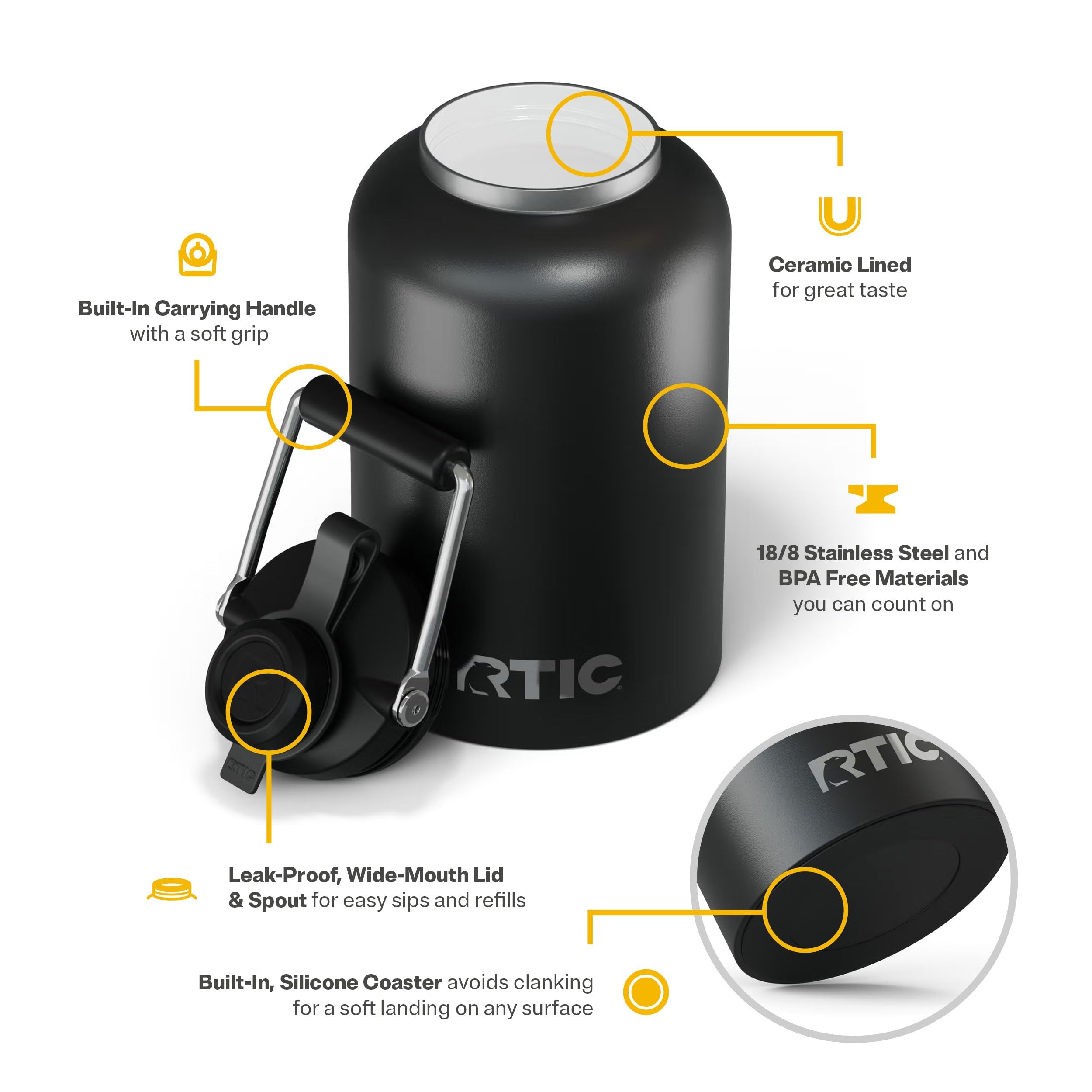 ALL-DAY HYDRATION: Meet the Outback Jug–designed to keep your beverages fresh on every journey; featuring a ceramic-lined interior that ensures your drink never has a metallic taste, this stainless steel jug water bottle lets you enjoy your favorite drinks