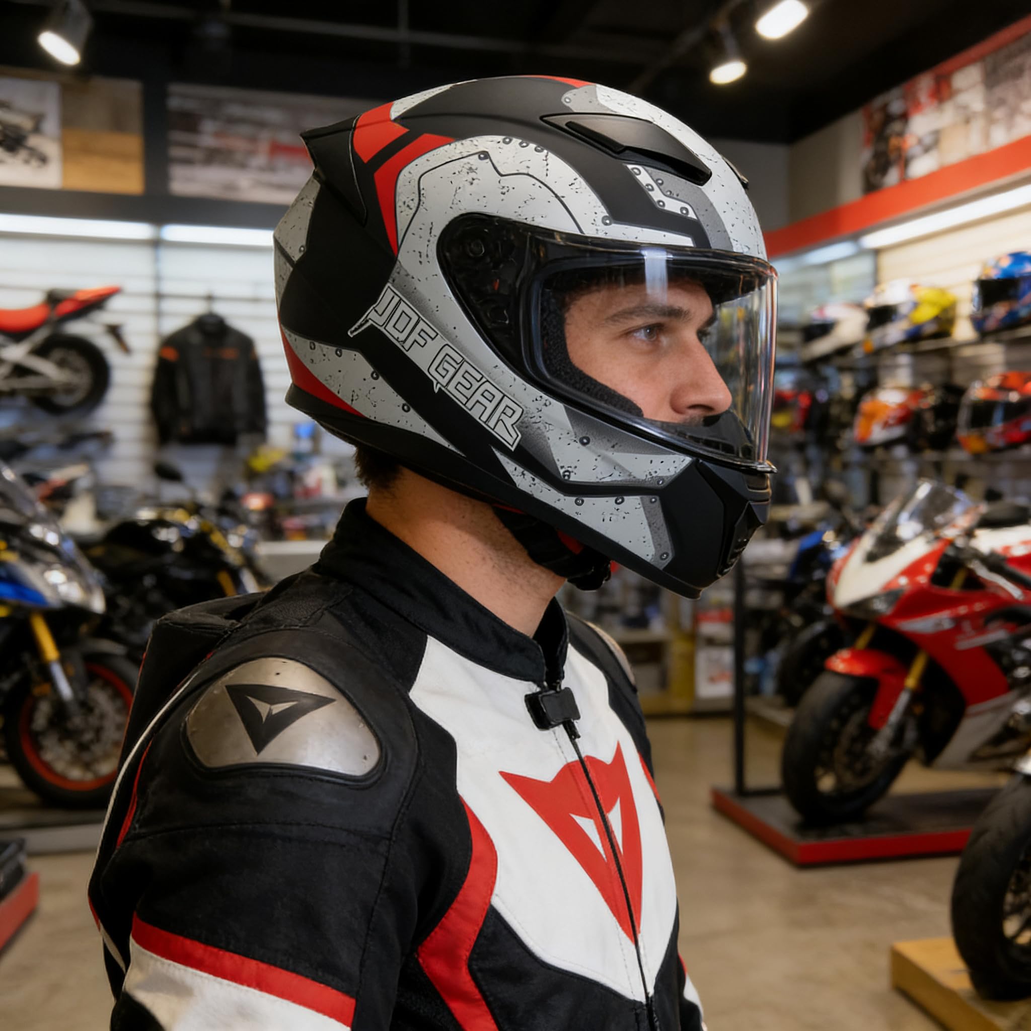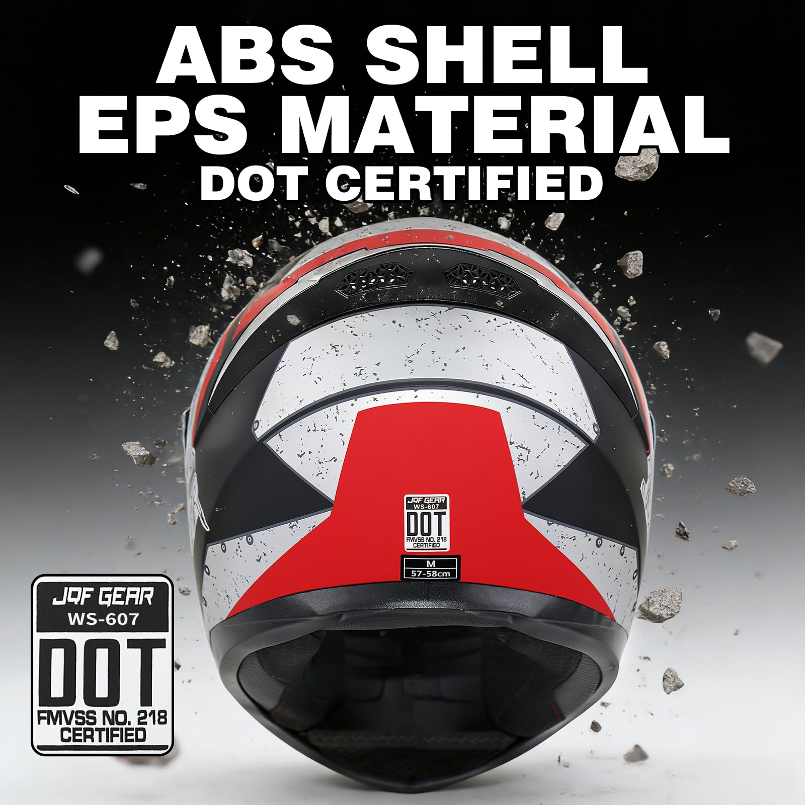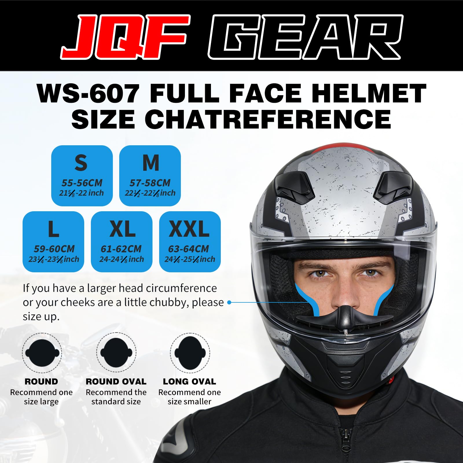 【High Safety Factor】JQF Gear full face motorcycle helmets WS-607 meet or exceed DOT FMVSS 218 standard. Lightweight ABS shell ard multi-density EPS material of our motorcycle helmets are durable and high safety factor. Quick release chin strap for easy use