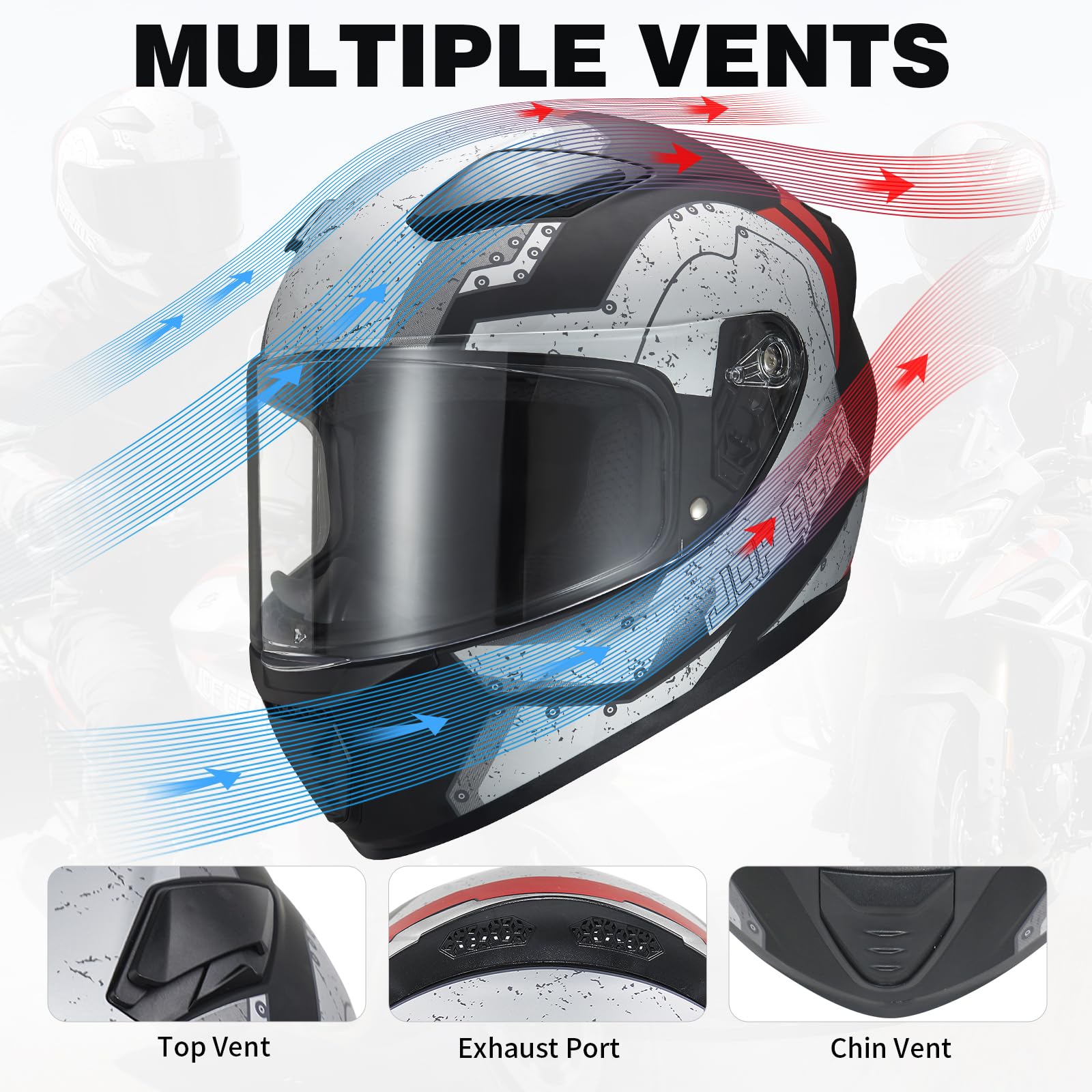 【Ventilation & Heat Dissipation】The full face helmet has multiple vents to provide optimal ventilation and heat dissipation, suitable for any riding environment, summer or winter