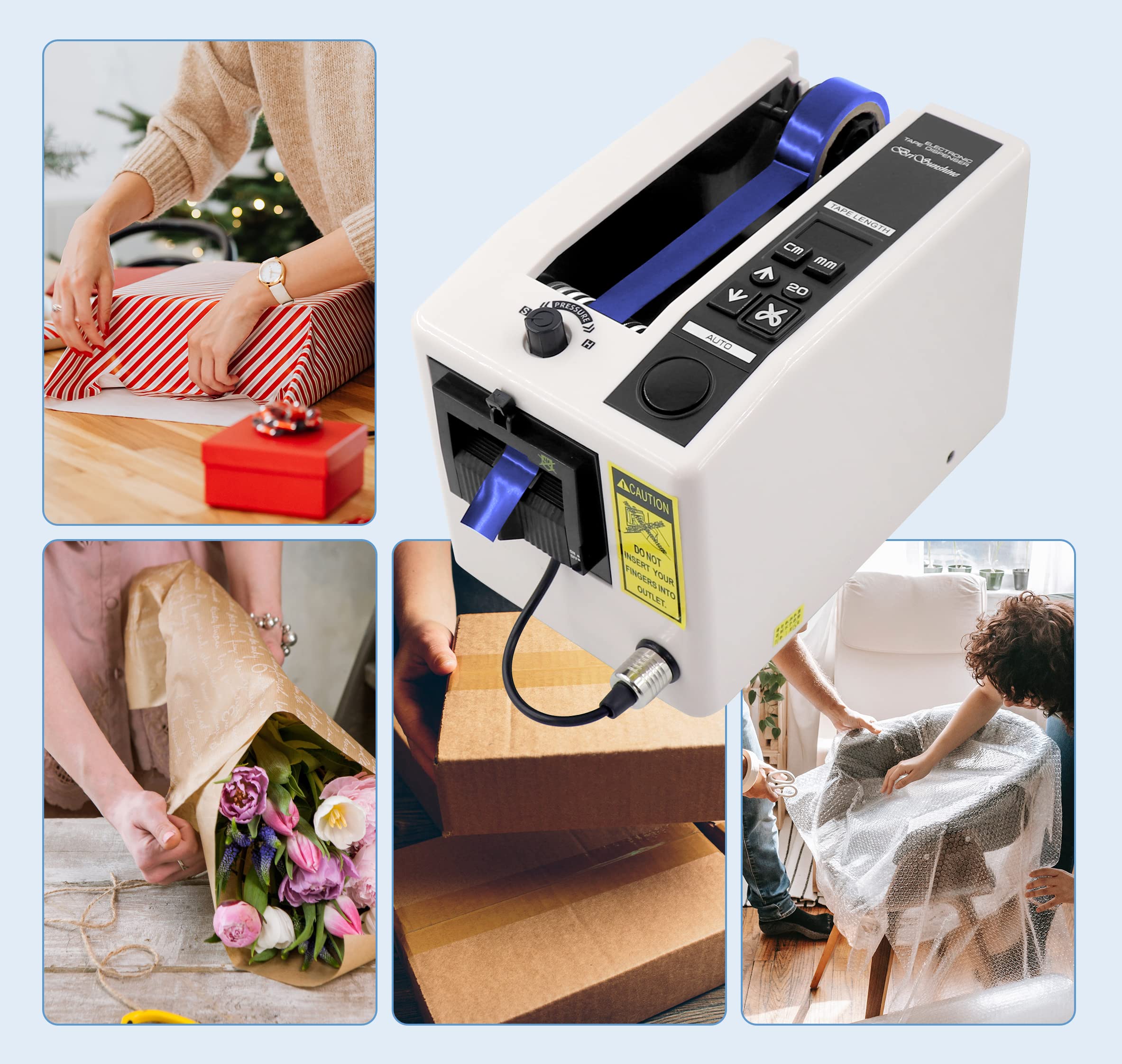 【Easy to Use & Wide Application】--- It is so simple to use the tape dispenser. Please load the tape firstly, next set the desired tape cutting length, select Auto/Manual mode, and finally press the cutting button. This electric tape machine is compact and portable,which is widely used for packaging and wrapping,transportation industry,factory,office,household,ect.