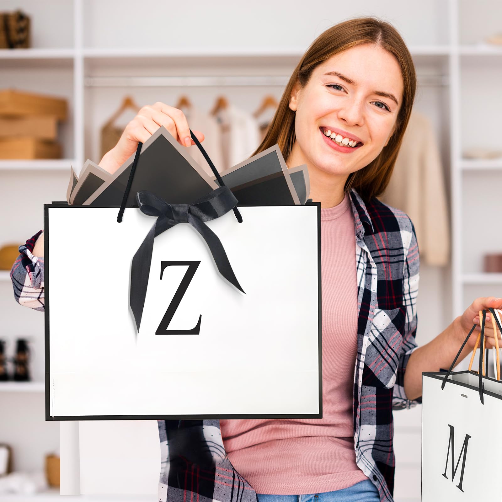 Personalized Gift Paper Bags: A-Z letter design, making your gift bags for women more individual. it can be a special personalized gift and a meaningful keepsake. Let your beloved one know that she is the most important person to you.