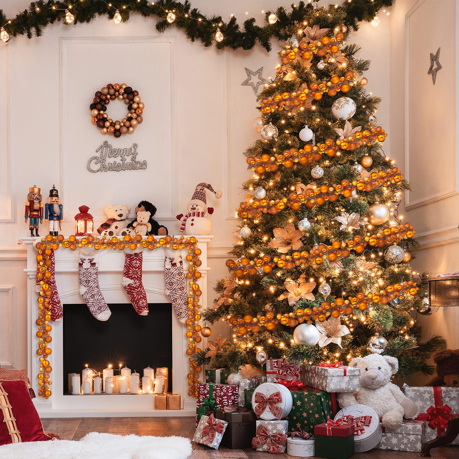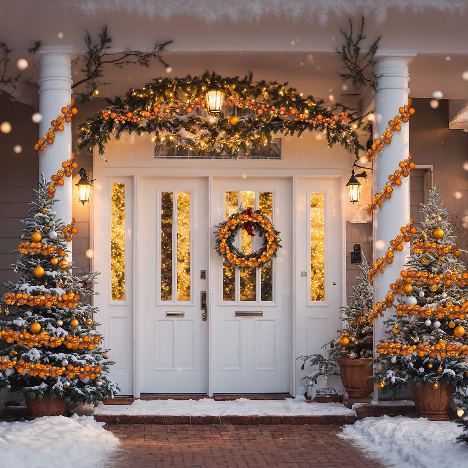 Elegance and Shine: our Christmas garlands come in a dazzling orange color to brighten up your festive atmosphere; Each bulb on the garland varies in size and offers a delicate shimmer, showcasing an exquisite and appealing design; These traditional colored garlands are ideal for Christmas settings and their vibrant orange will help create a lively and radiant Christmas decor theme