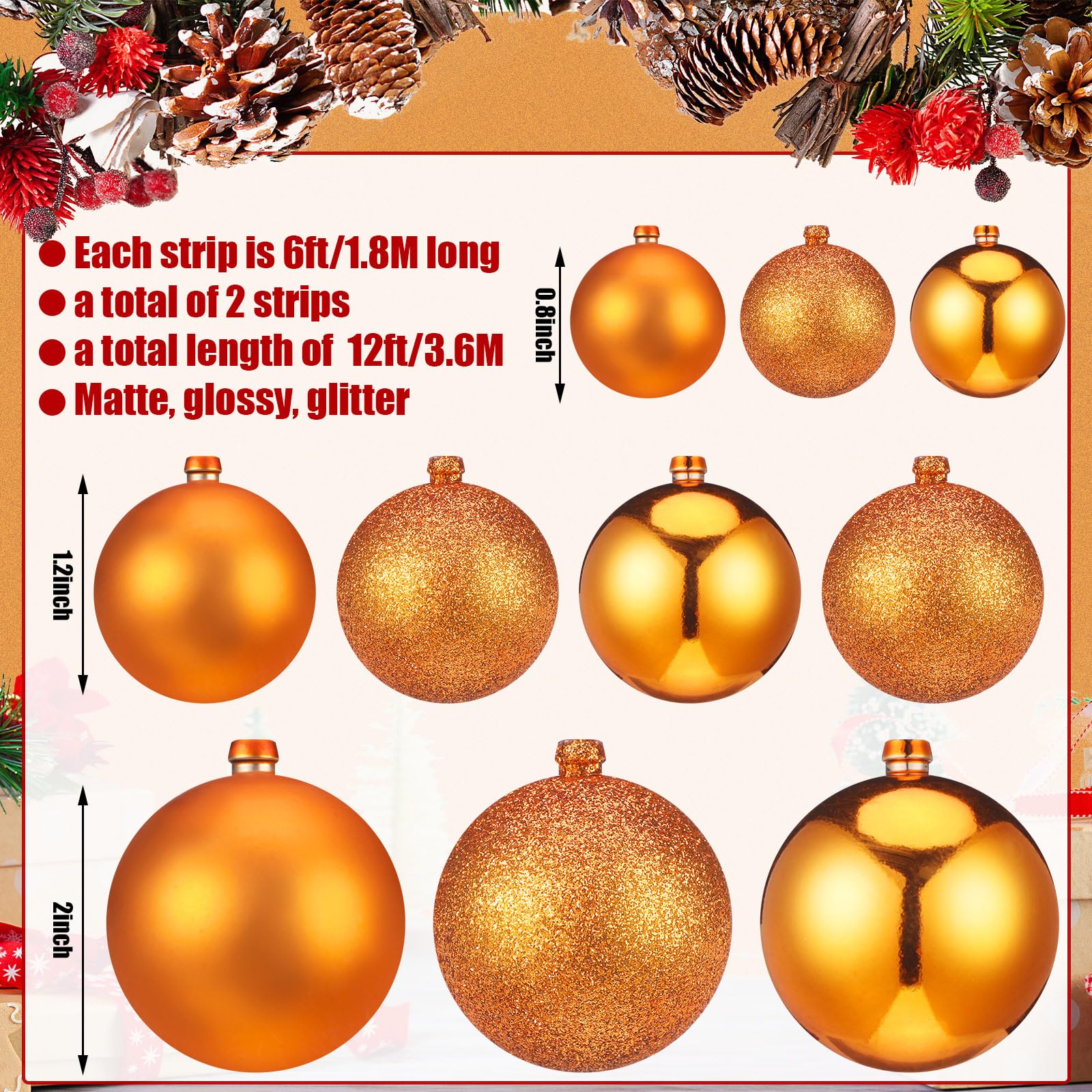 Features: These Christmas garland balls make for the ideal gifts during the holiday season. Their exquisite design and quality construction stand out, bringing the charm of Christmas to your home. The lively orange color of our Christmas ball garland ball ornaments will blend well with your Christmas themes, amplifying the festive cheer. Their vibrant color will create a heartwarming Christmas scene. Specifications: Material: plastic Color: orange Size: approx. 6.6 ft in length of each garland Package includes: 2 Pcs Christmas bulb garlands Notes: Manual measurement, please allow slight errors on size. The color may exist a slight difference due to different screen displays.