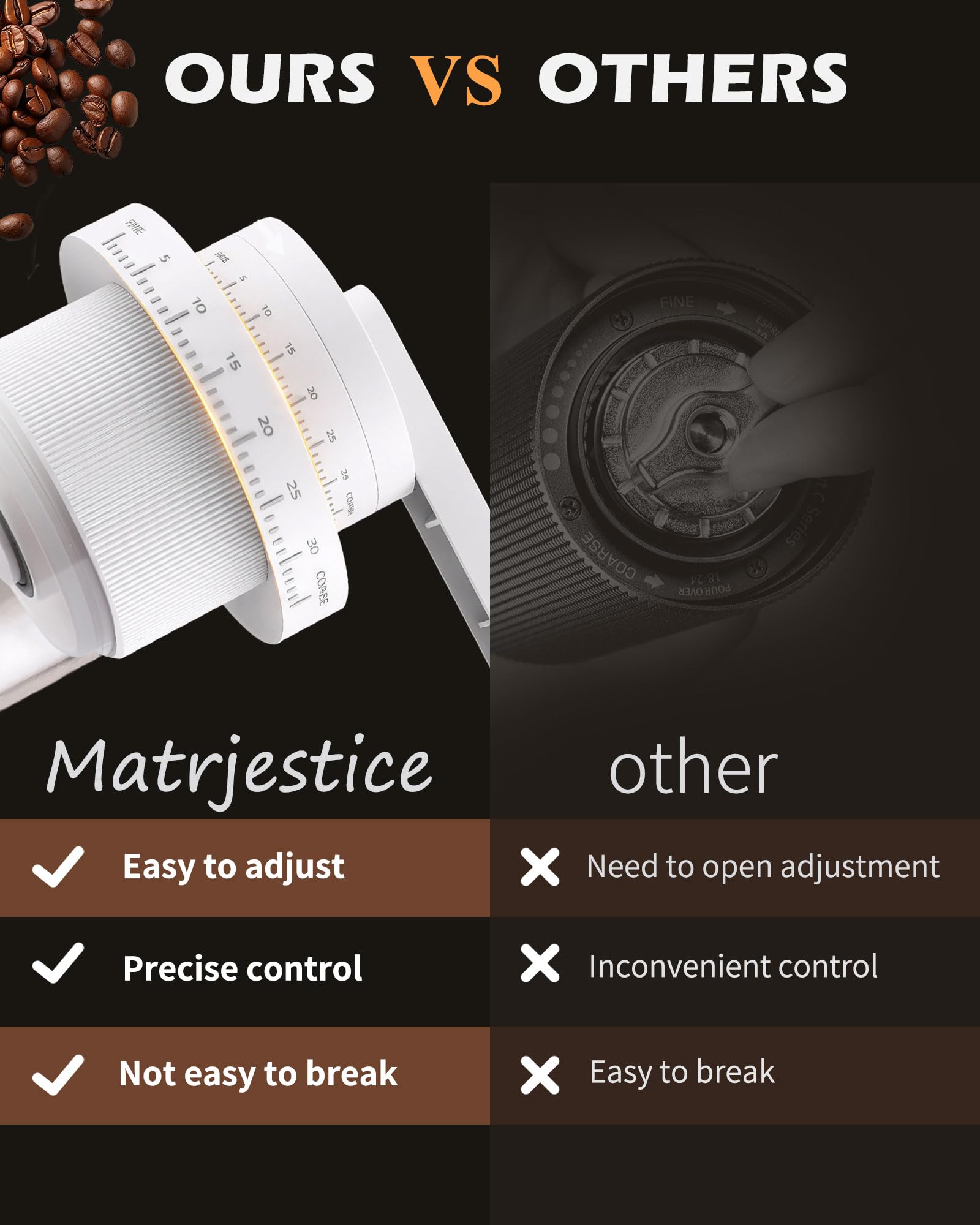 Say goodbye to complex cleaning routines - the Matrjestice coffee grinder features easy-to-clean detachable parts, making maintenance a breeze. Enjoy hassle-free assembly and cleaning to keep your grinder in top condition.