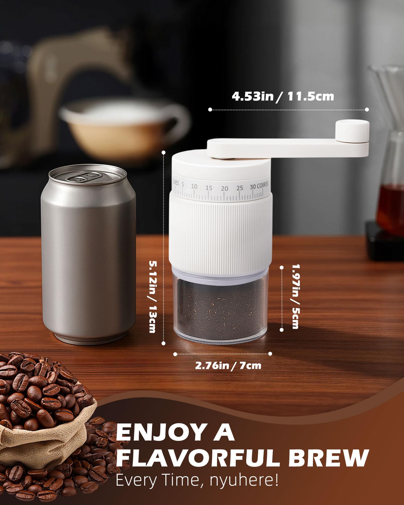 Experience the perfect cup of coffee with the Matrjestice Manual Coffee Grinder. This portable hand grinder offers 35 adjustable settings for precise grinding to suit your favorite brewing methods like french press, moka pot, and cold brew.