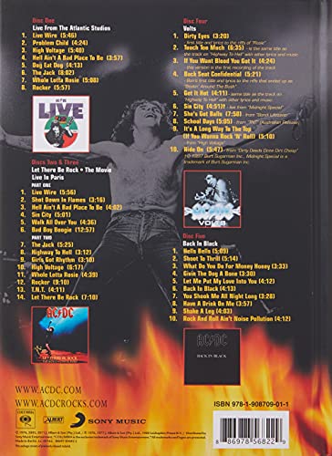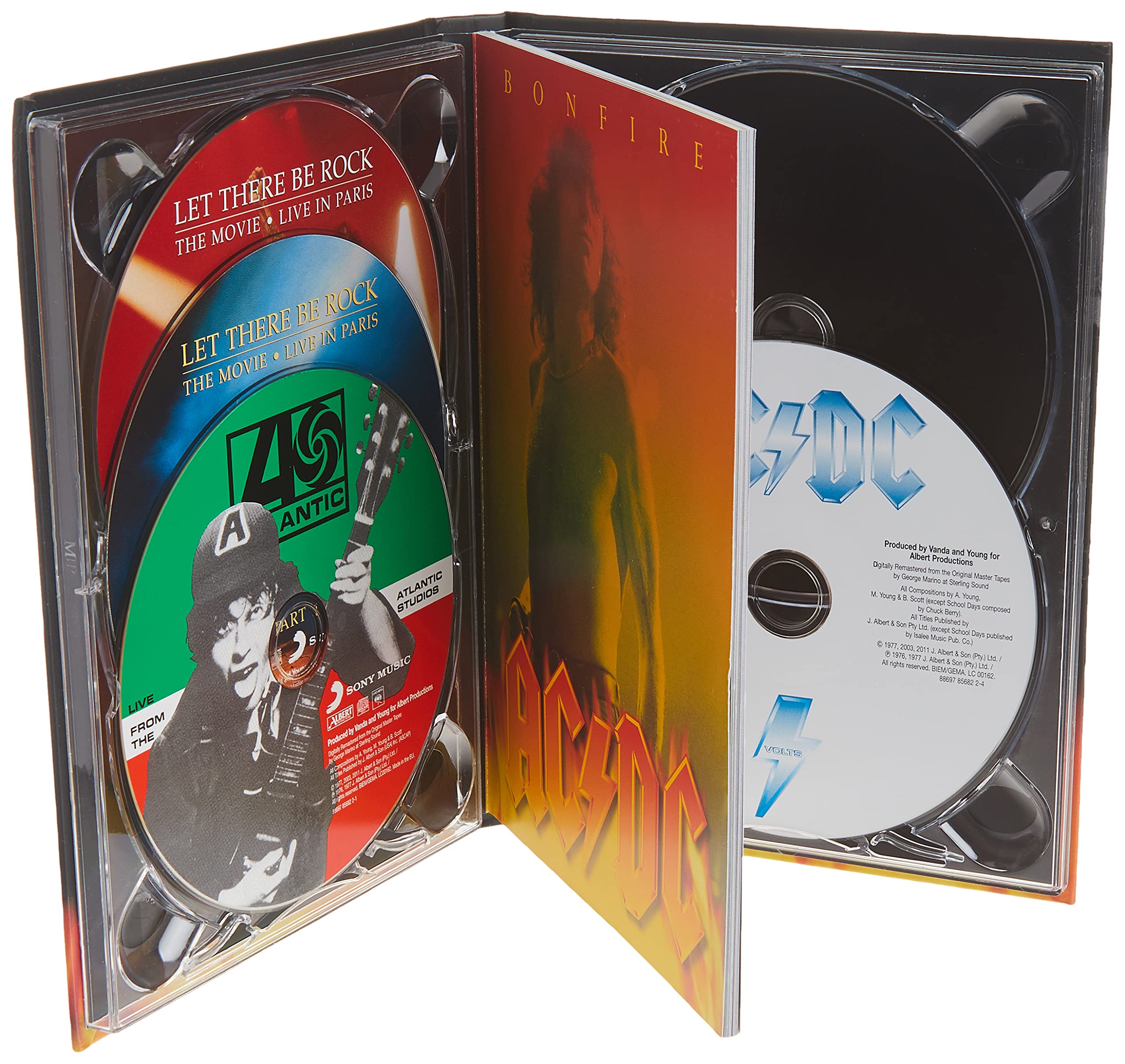 The definitive CD box includes; 'Live from the Atlantic Studios' (8 tracks), 'Let There Be Rock-The Movie Live in Paris, 'Volts' (12 tracks) and 'Back in Black' (10 tracks). Sony. 2011.