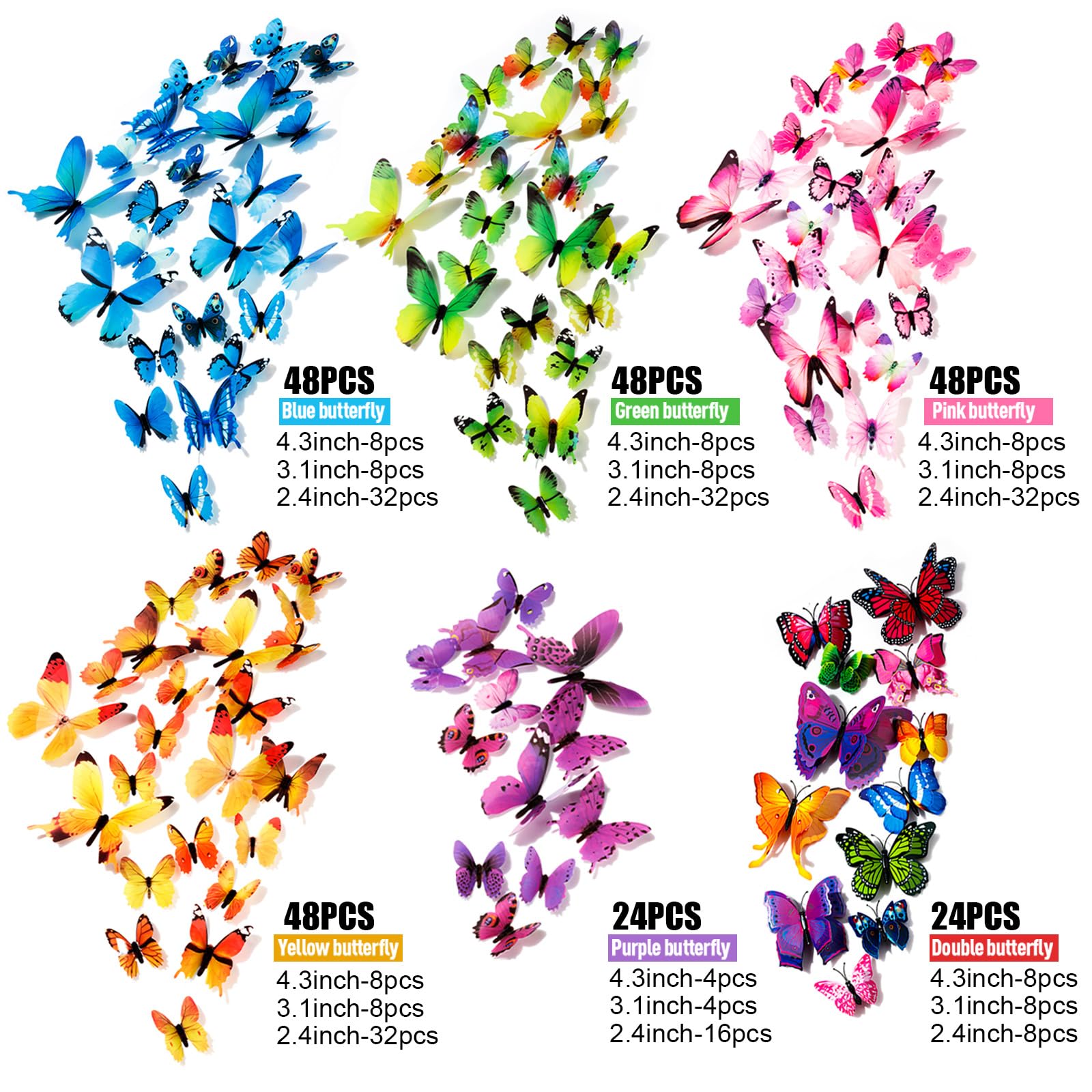 【Butterfly Stickers Set】240 pieces PVC butterflies, multicolor(purple, pink, blue, yellow, green,colorful),include foam like adhesive.