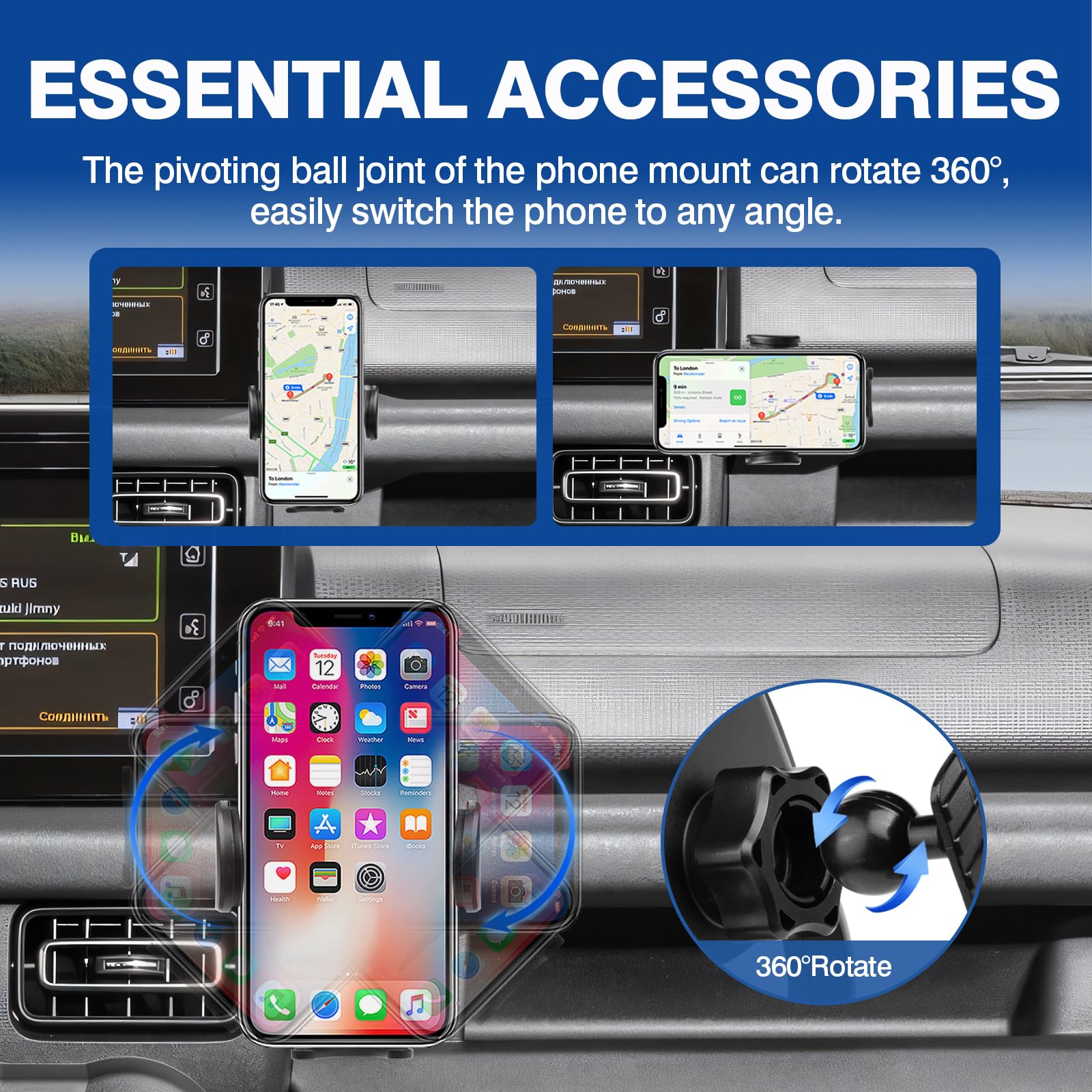 Vehicle Specific: This car phone holder is custom fit for Suzuki jimny JB64 JB74 2019 2020 2021 2022 2023 2024 2025. Adapt to 4.7-6.9 inch phones. Please make sure it meets your need before purchase.