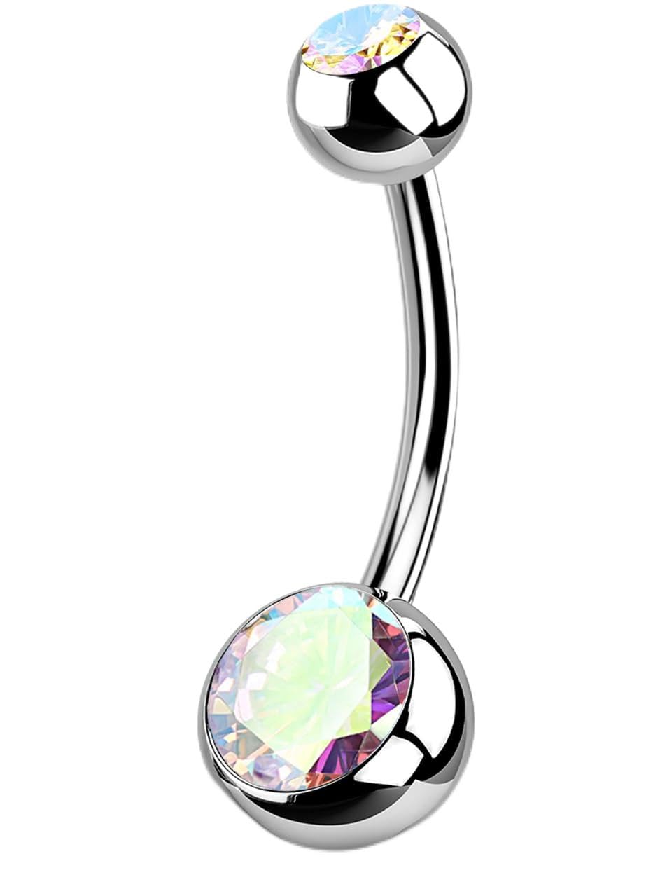 【Brilliant AB Color Sparkle — The iridescent AB CZ shifts beautifully under light, adding vivid shine that elevates belly rings for women, ideal for Christmas, Valentine’s Day, and chic daily looks.**