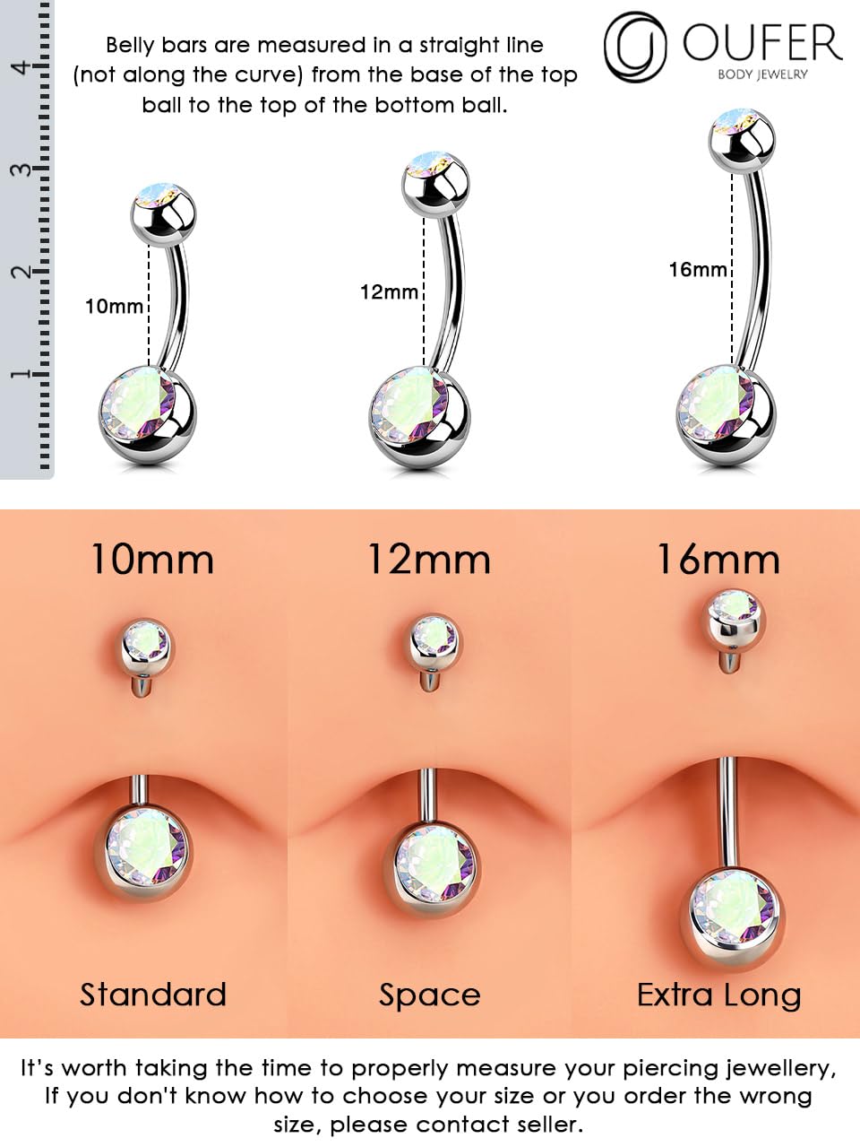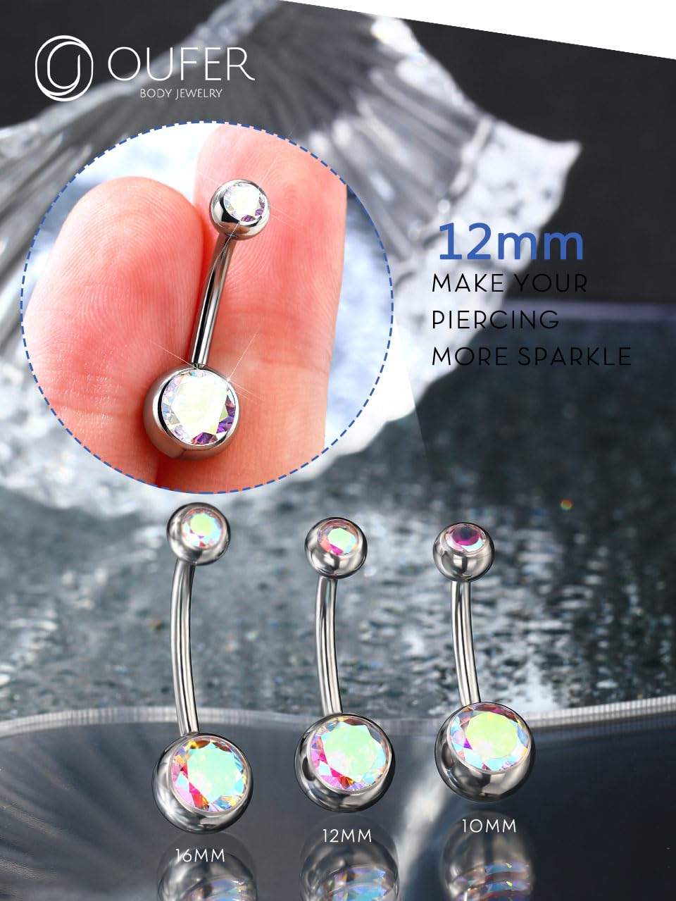 【Balanced 12mm Fit — The versatile 14G/12mm bar provides a comfortable mid-length fit, perfect for standard to slightly deeper piercings in belly button rings, belly rings, and high-quality navel piercing jewelry collections.**
