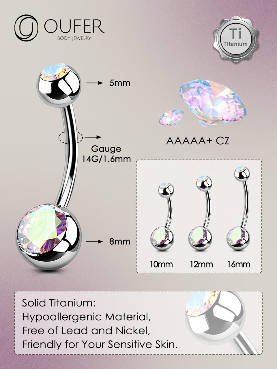 【Premium Titanium Material — Crafted from solid titanium, this belly button ring offers a hypoallergenic, nickel-free finish ideal for sensitive skin, delivering long-lasting shine among titanium belly button rings and everyday belly button jewelry.**