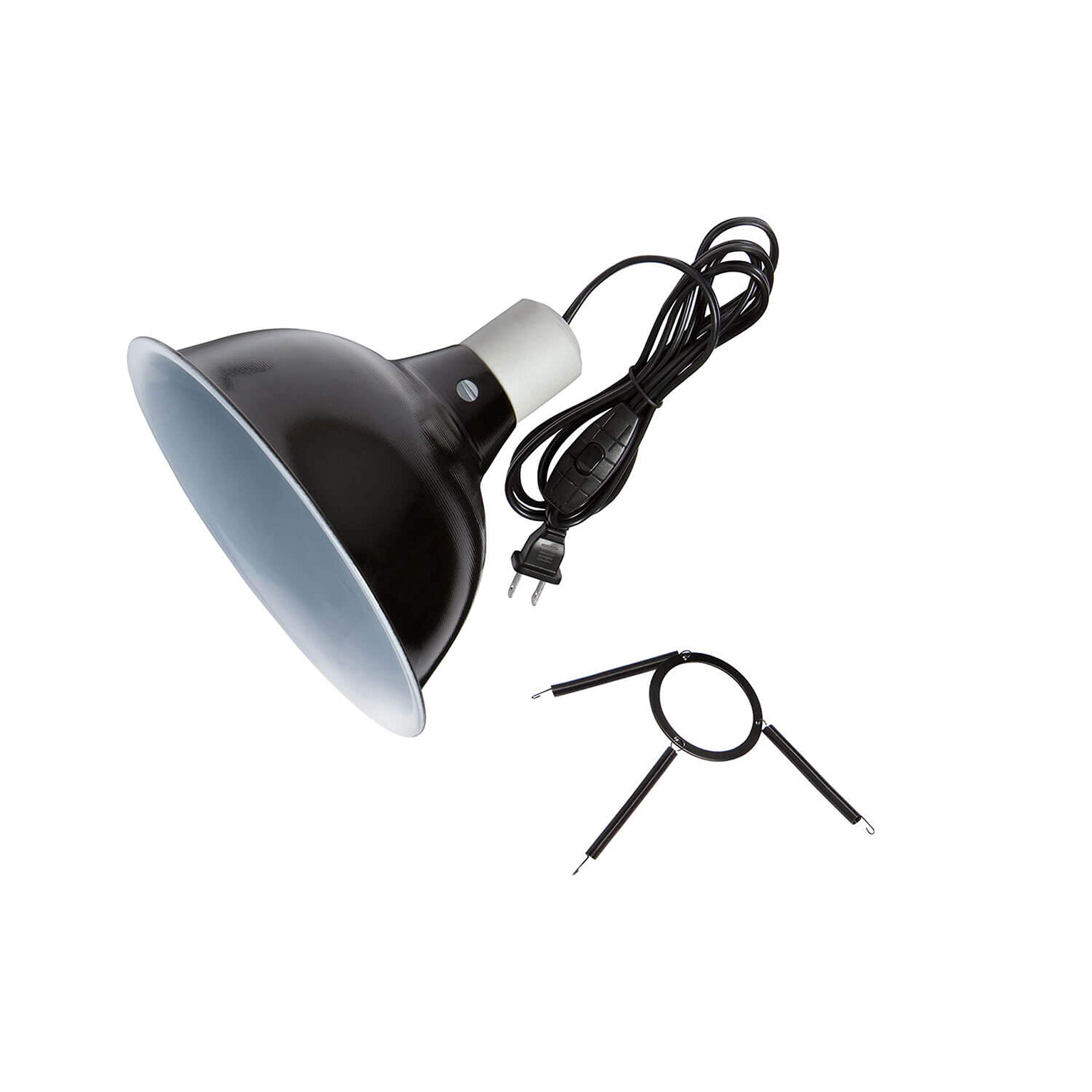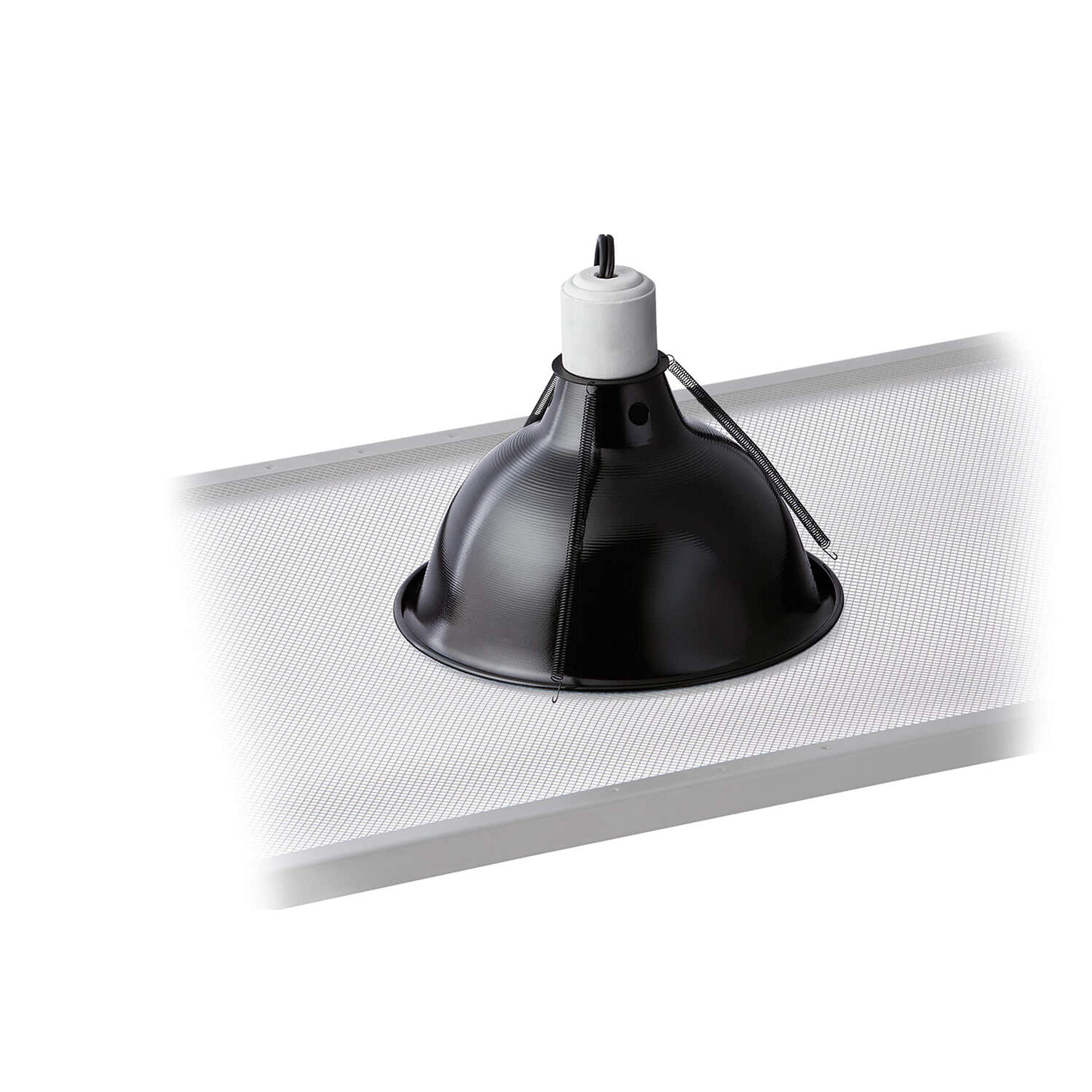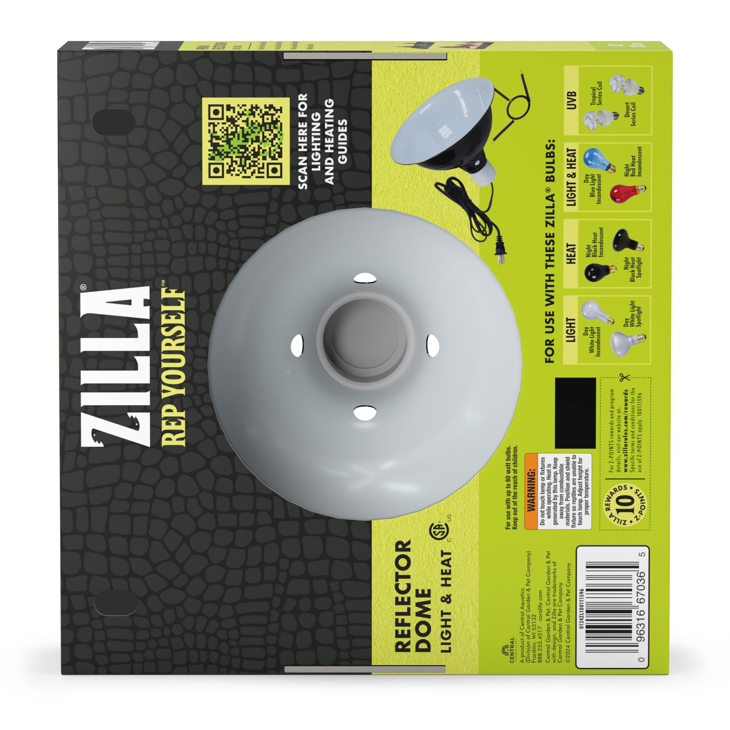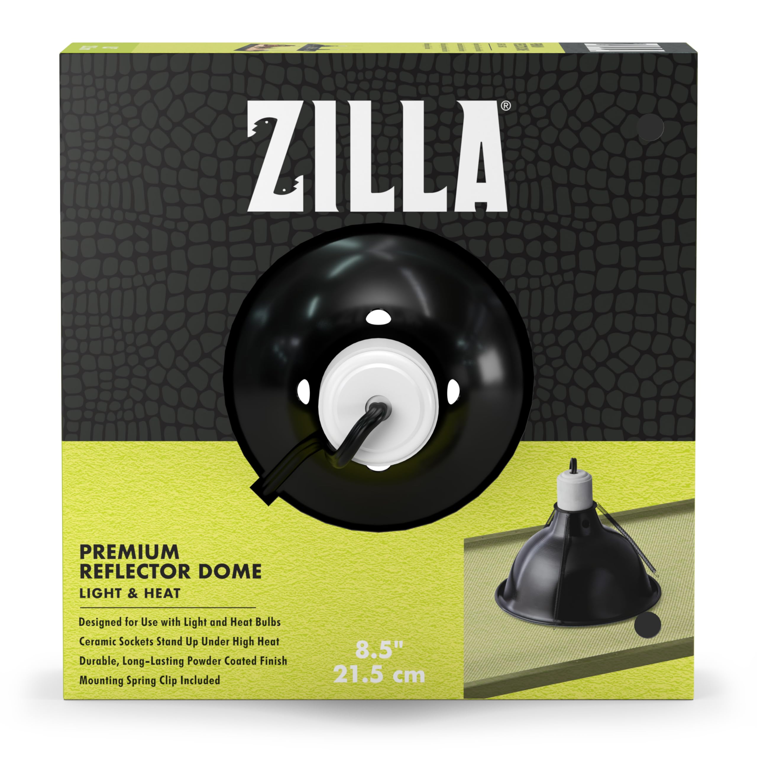 The Zilla Black Reflector Dome incandescent light fixtures are designed to deliver years of heat or light to reptile terrariums. Each is topped with a ceramic socket to withstand constant heat. The black exterior and reflective white interior finishes are powder-coated for added luster and long life. 6 ft. power cord with an in-line on/off switch is positioned near the fixture for easy use. Spring clips, to hold dome securely on screen top, are included.