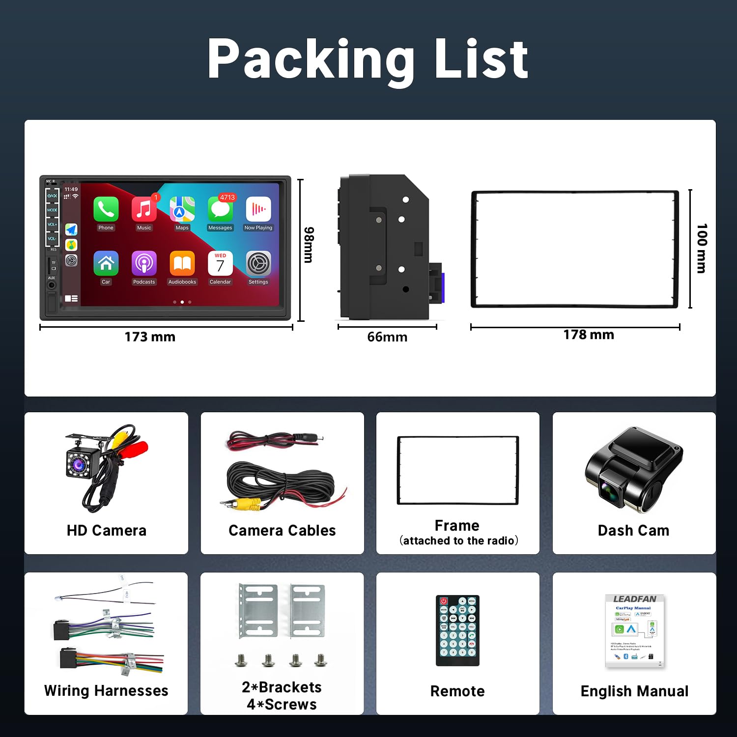 【Important Tips】Please make sure your dash board opening size fits our carplay car stereo. If our car stereo double din size does not meet your dash size, you would need to purchase an additional suitable dash kit; Please read the instructions before installation and it is recommended to install at a professional car audio shop; Some cars may also require two additional after accessories to complete the installation: Wire harness adapter and radio antenna adapter for your car model.