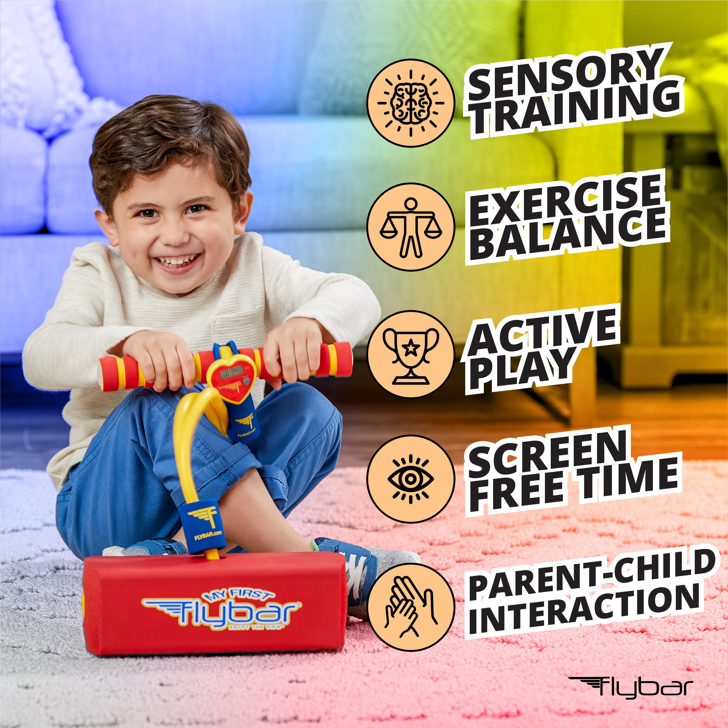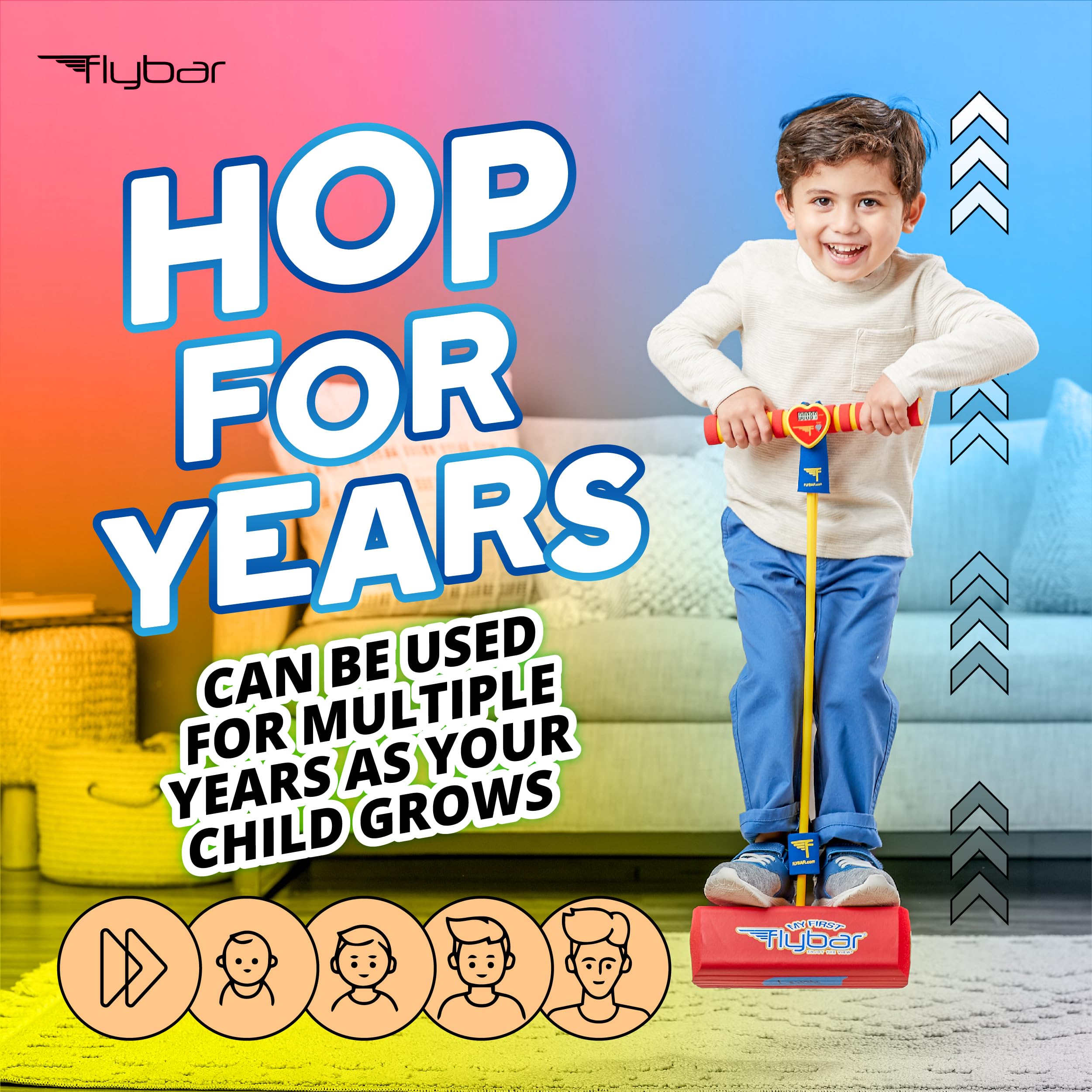 Get ready for some great family fun with My First Flybar! Now with flashing LED lights and heart shaped pogo counter! The Best Foam Starter Pogo Sticks For Toddlers - By the Premier Pogo Stick Brand today and for over 90 years. Flybar’s Foam Pogo Bungee Jumper is a new and exciting way for your children to play. Keeps them active and can be used indoors or outdoors! Here some of the amazing features and benefits of My First Flybar: -Not only is it tons of fun for toddlers and little kids, but for adults too! Our Foam Pogo Bungee Jumpers are made with strong and durable materials to ensure they last. Doesn’t matter if you’re 3 or 30, you will love My First Flybar! -My First Flybar uses a strong, flexible bungee in replace of a fixed frame. The harder you pull up on the bungee, the higher you will bounce! -Safely use indoors and outdoors! With the soft foam base you won’t have to worry about any scuffs or scratches on your floors. Start flying today with My First Flybar!