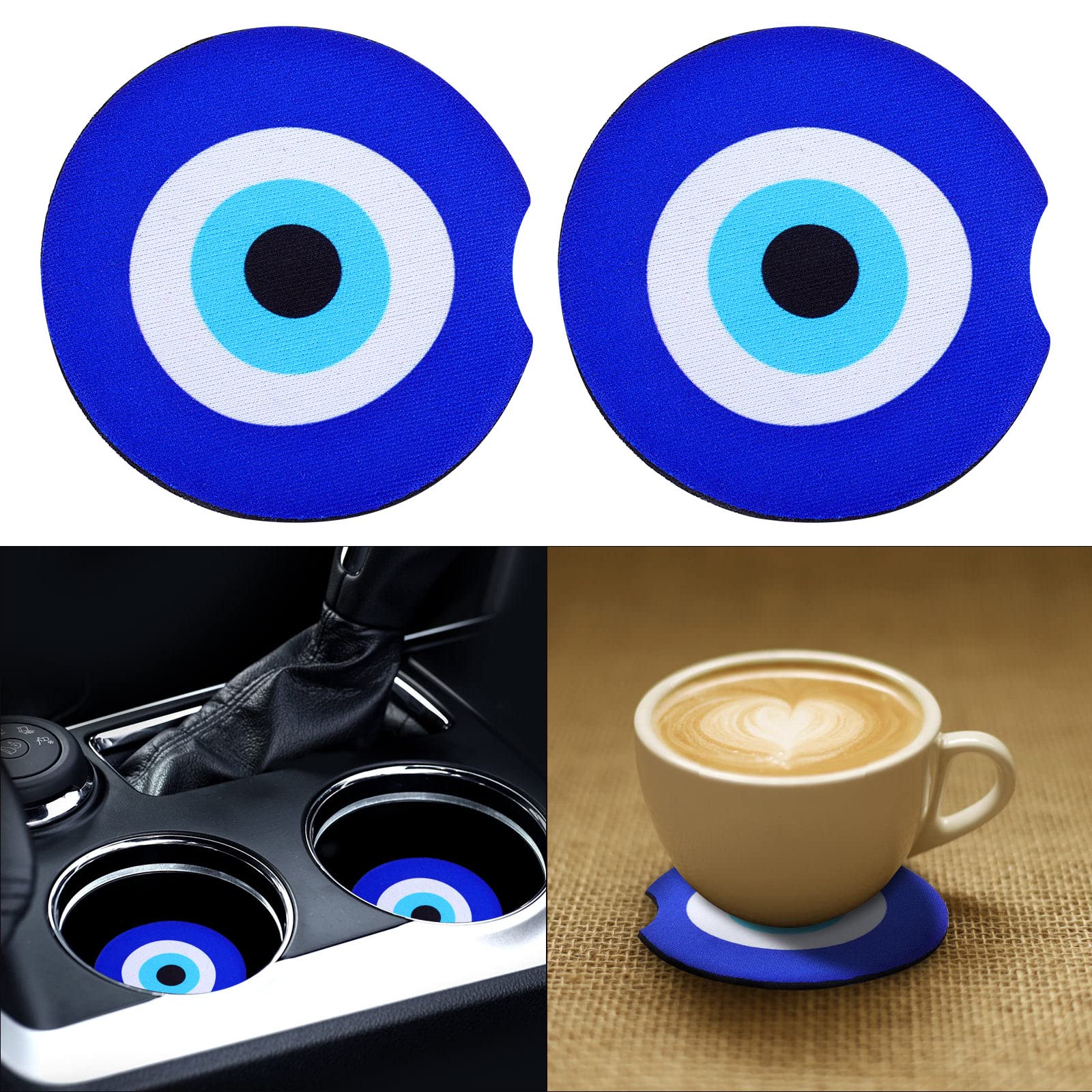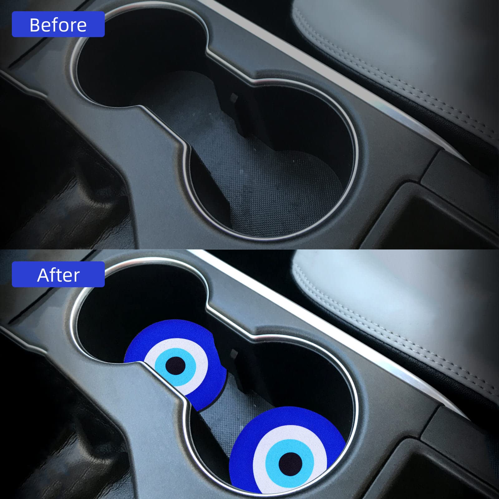 Ideal Gift Choice:This car cup mat with blue evil eye pattern, which is not only a perfect car decoration, but also a surprising gift to your family, friends, and colleagues on holiday, birthday, etc