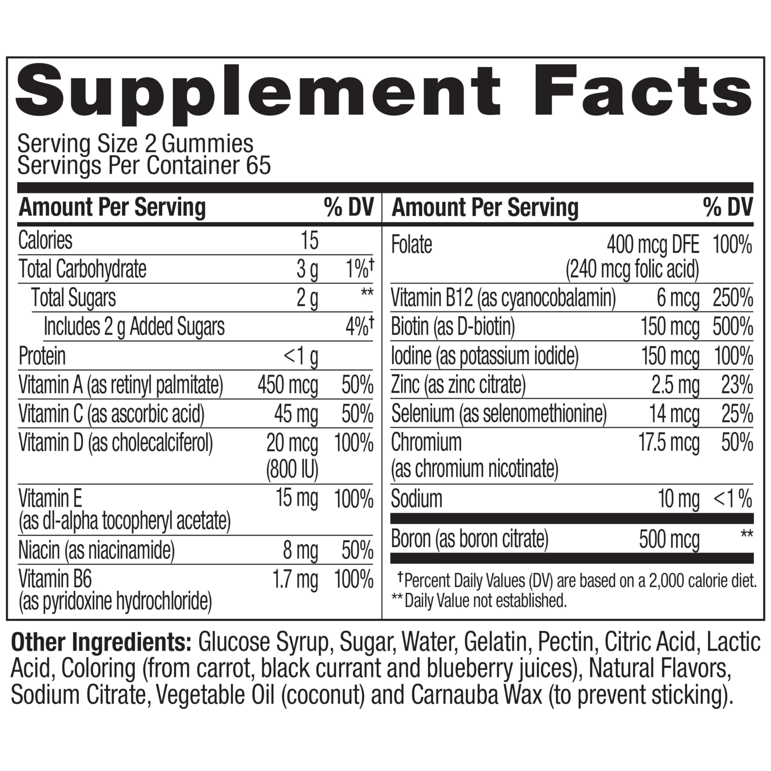 DELIGHTFULLY TASTY: These women's multivitamins come in Berry flavor with other natural flavors with no synthetic colors or flavors and gluten-free. 130 gummies per bottle (65 day supply)