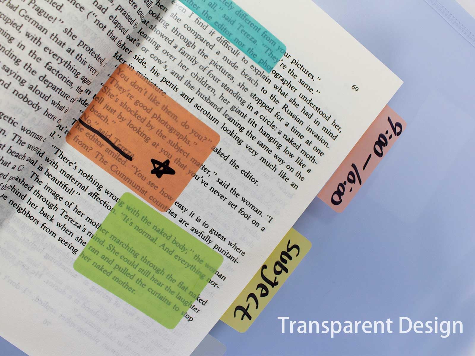 Safety Material: the tabs made of BOPP material and special adhesive, waterproof, non-toxic, no odor, smooth writing; self adhesive part is transparent