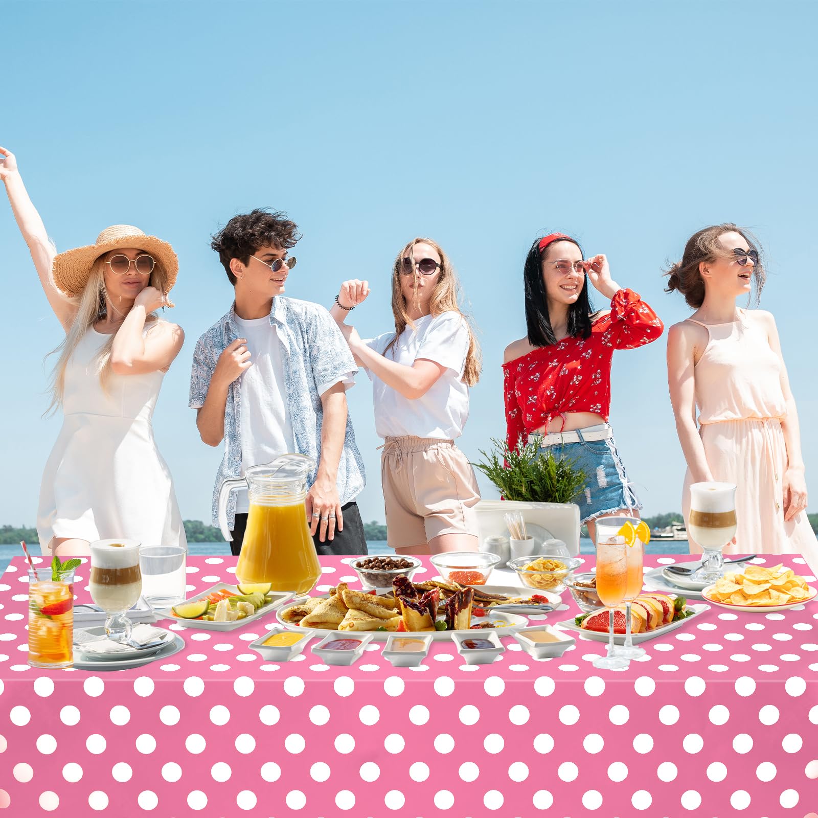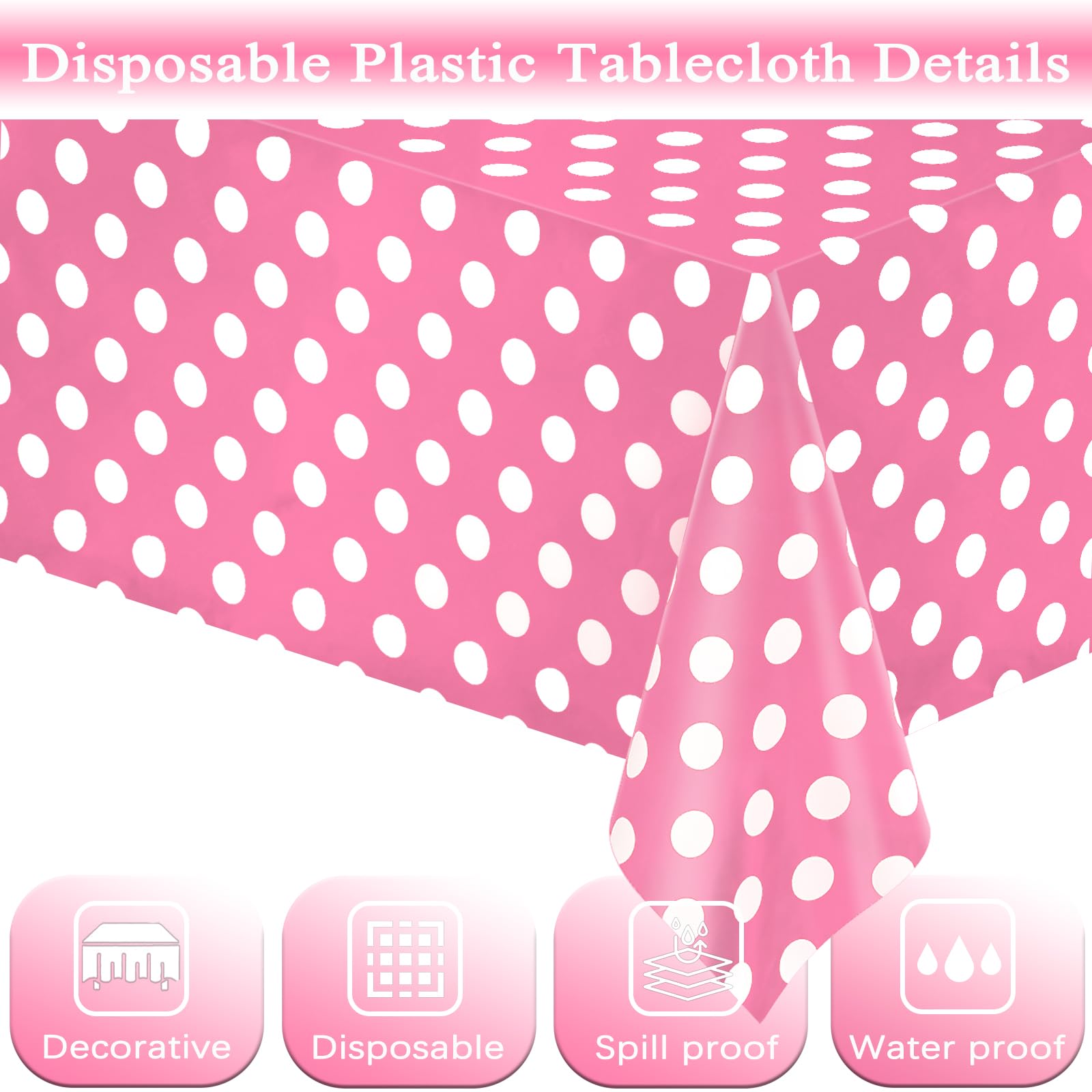 Packing Include: You will receive 4 packs pink and white dots table cloths, our tablecloth made of premium PE material, which is soft and comfortable to touch, not easy to tear, and can protect your desktop well