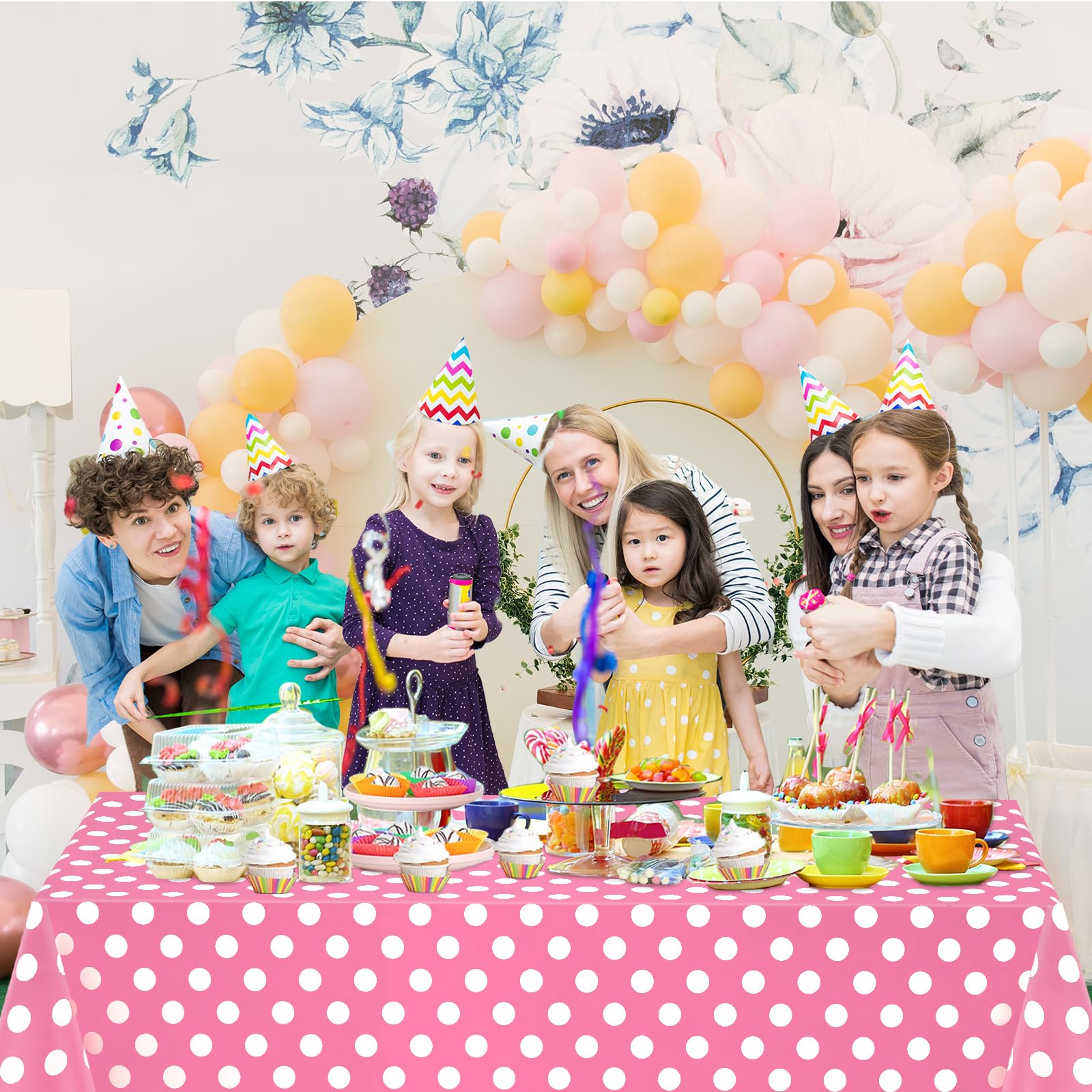Better Enjoyment: This pink polka dot tablecloth making you more relaxed and comfortable in the party without having to worry about the subsequent cleanup