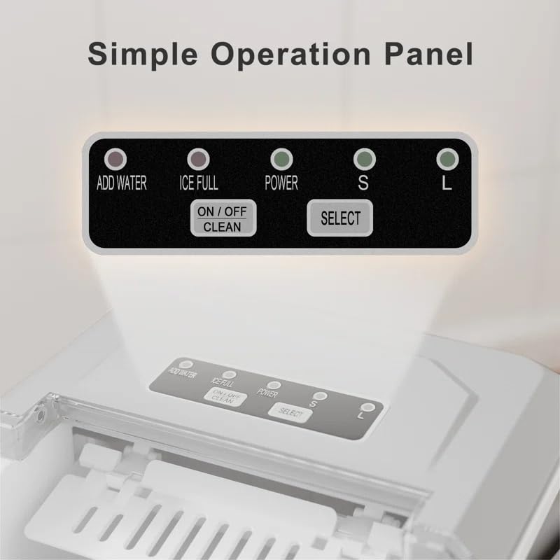 SIMPLE CONTROL PANEL: Enjoy fresh ice with 3 easy steps! Fill the reservoir, switch the unit on, then select small or large ice cubes. The ice maker features an indicator light to notify when water needs to be added or ice is full. Upgrade your home or office with an ice maker that is both fast and easy to use