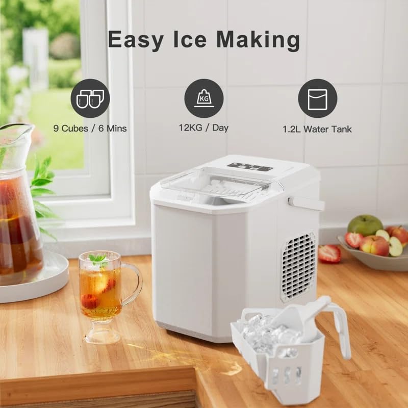 EFFICIENT ICE MAKING: Make bullet-shaped ice cubes in just 6 minutes! The powerful compressor can produce up to 26 lbs per day with 1.3 lbs storage capacity. The 1.2 L water tank keeps the machine topped up and ready to go