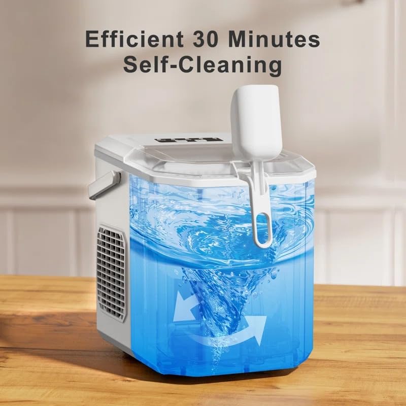 SELF-CLEANING FUNCTION: Keep your ice fresh and clean with the automatic self-cleaning function. Simply remove the basket, add water, then hold the CLEAN button for 5 seconds to activate. After 30 minutes, you’ll be ready to make a new batch
