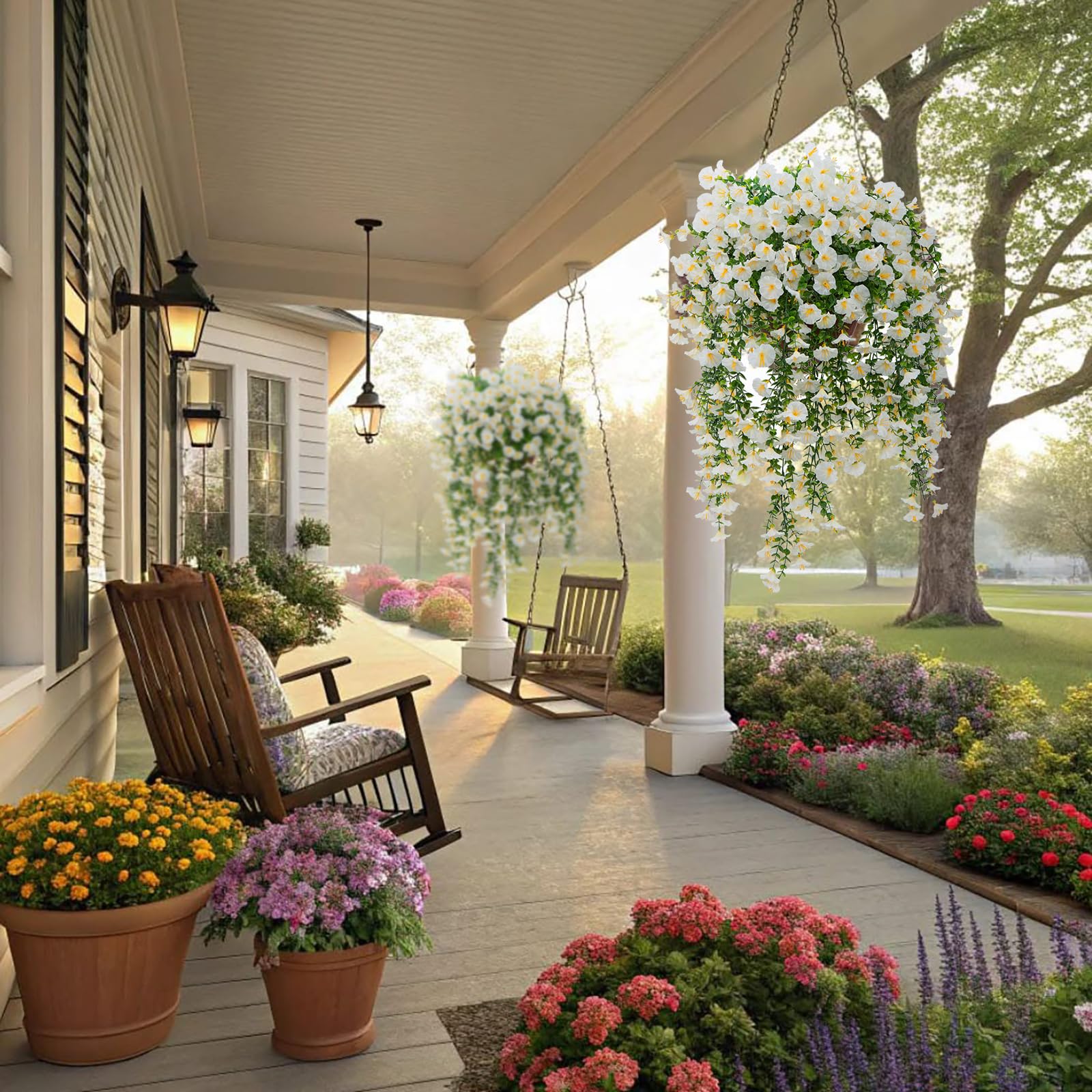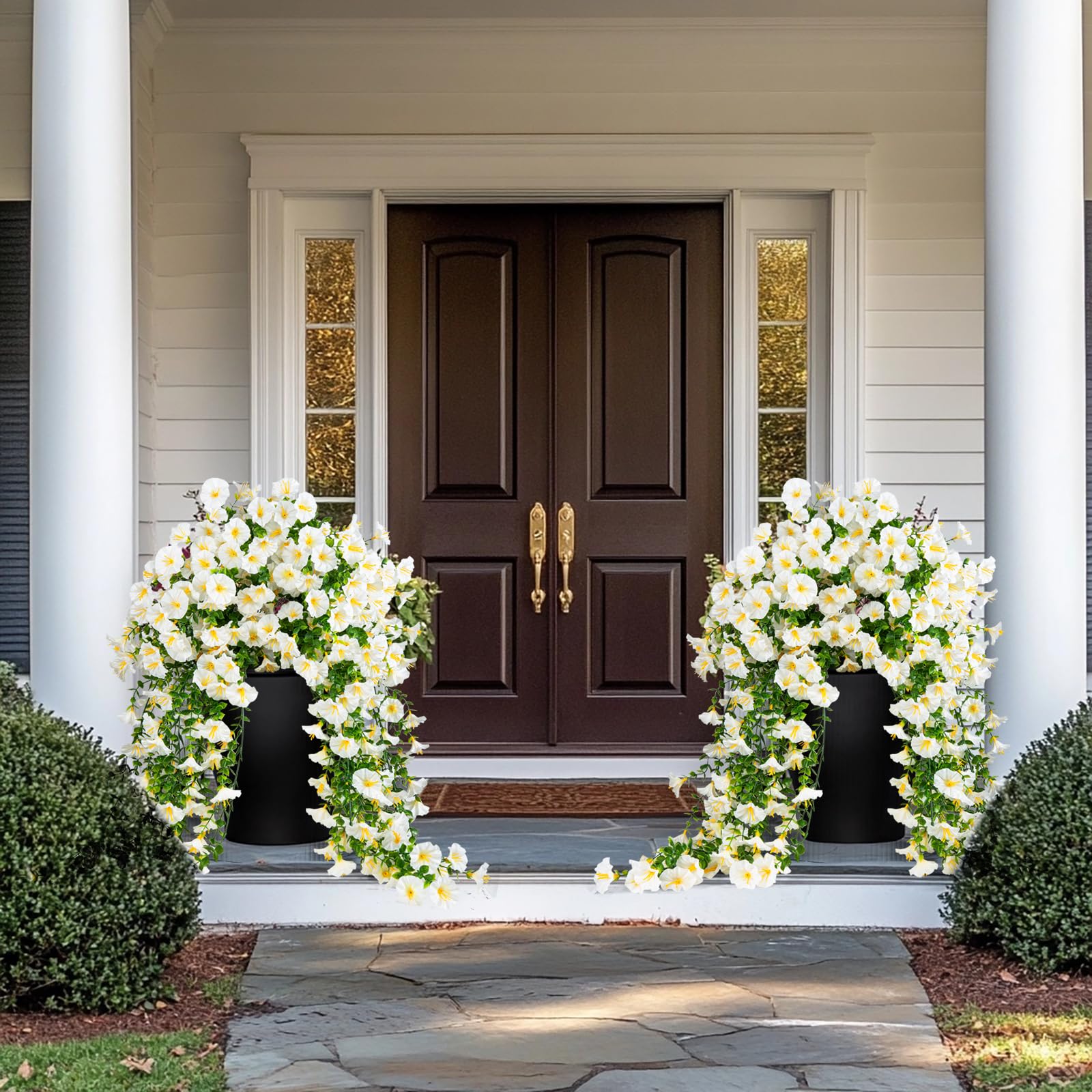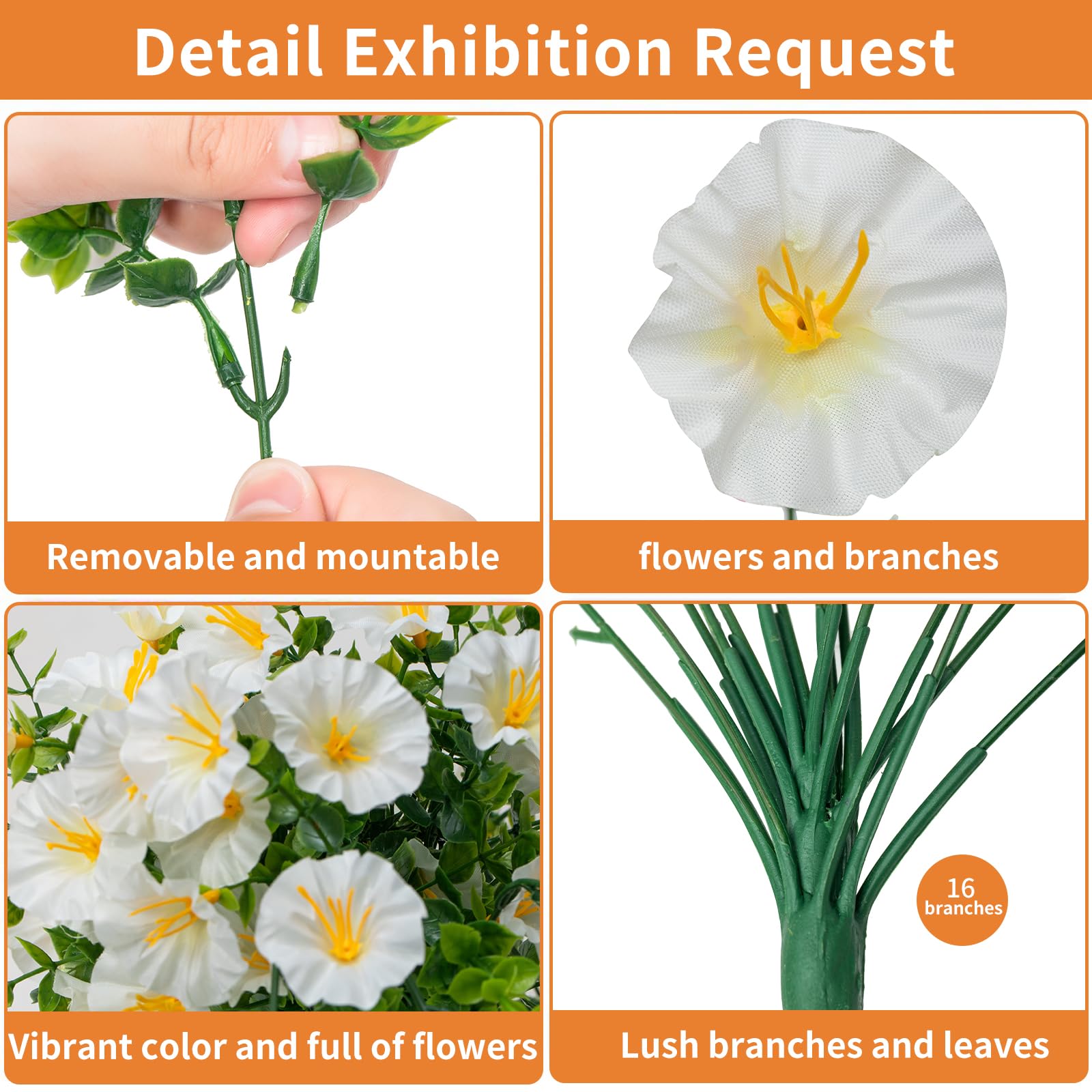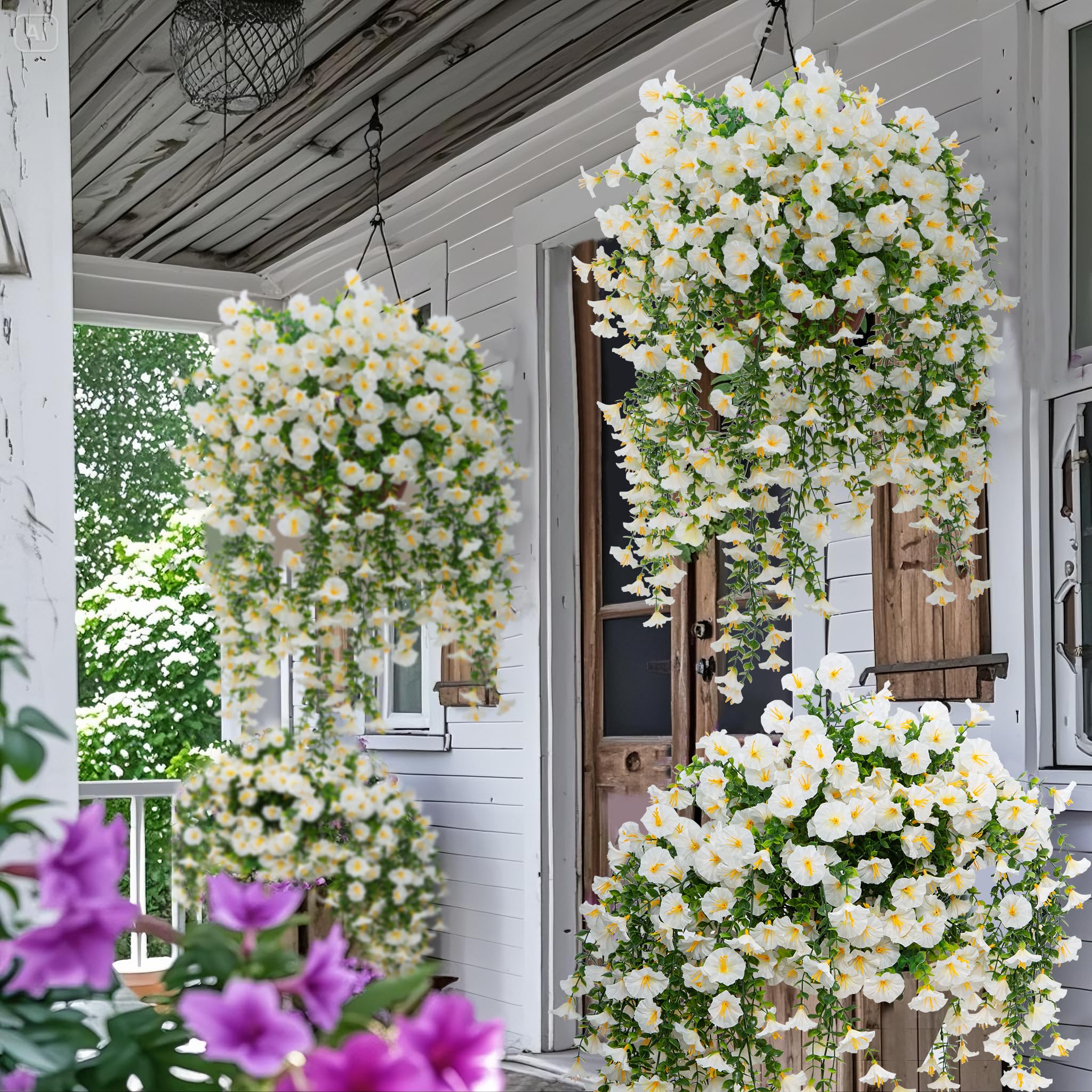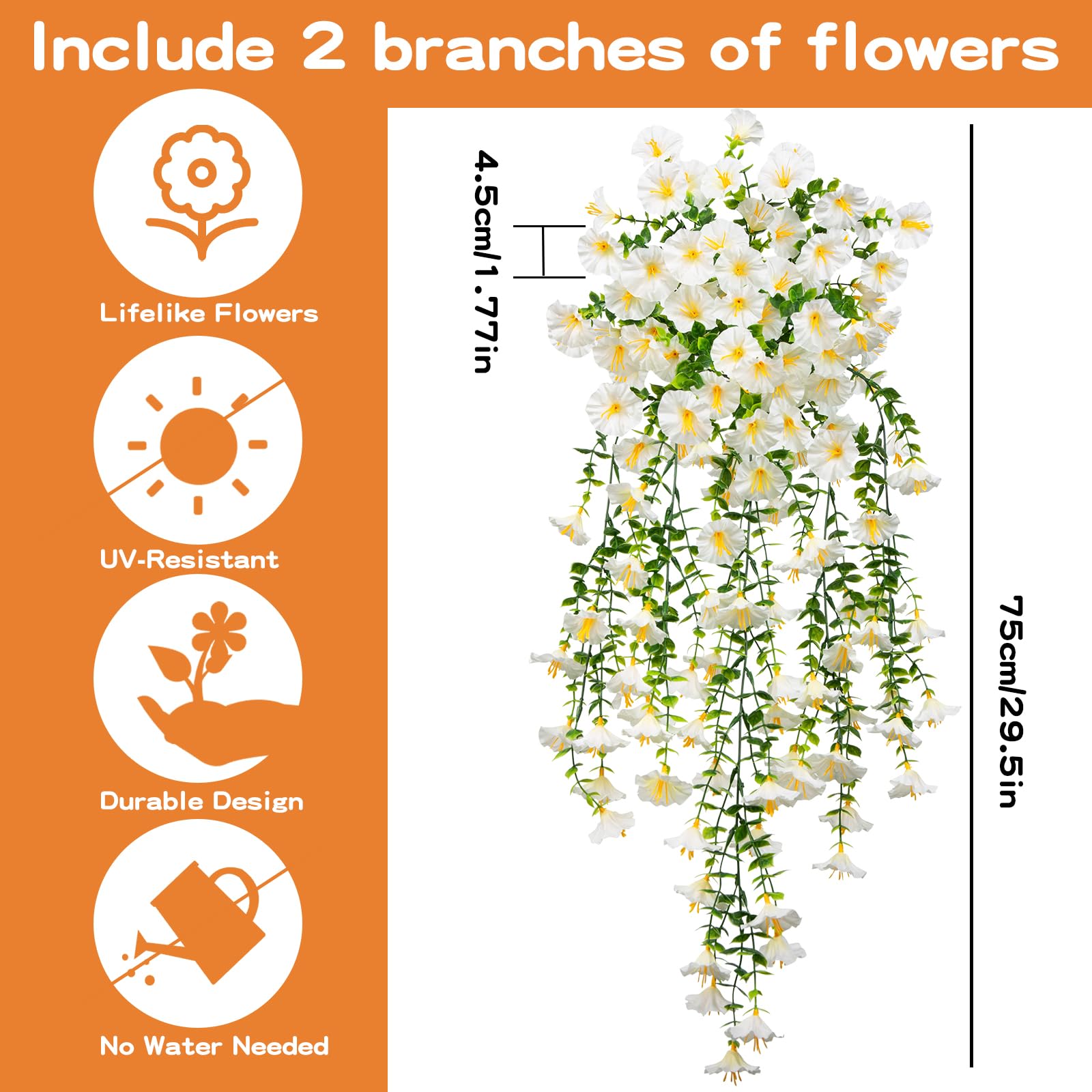 🌸 1. Premium 16-Branch Hanging Display Each set includes 2 bundles of lifelike artificial morning glory flowers with 16 branches per stem, designed for cascading elegance. The lush, multi-layered arrangement creates instant vertical interest in gardens, patios, or porches, transforming flat spaces into dynamic floral tapestries
