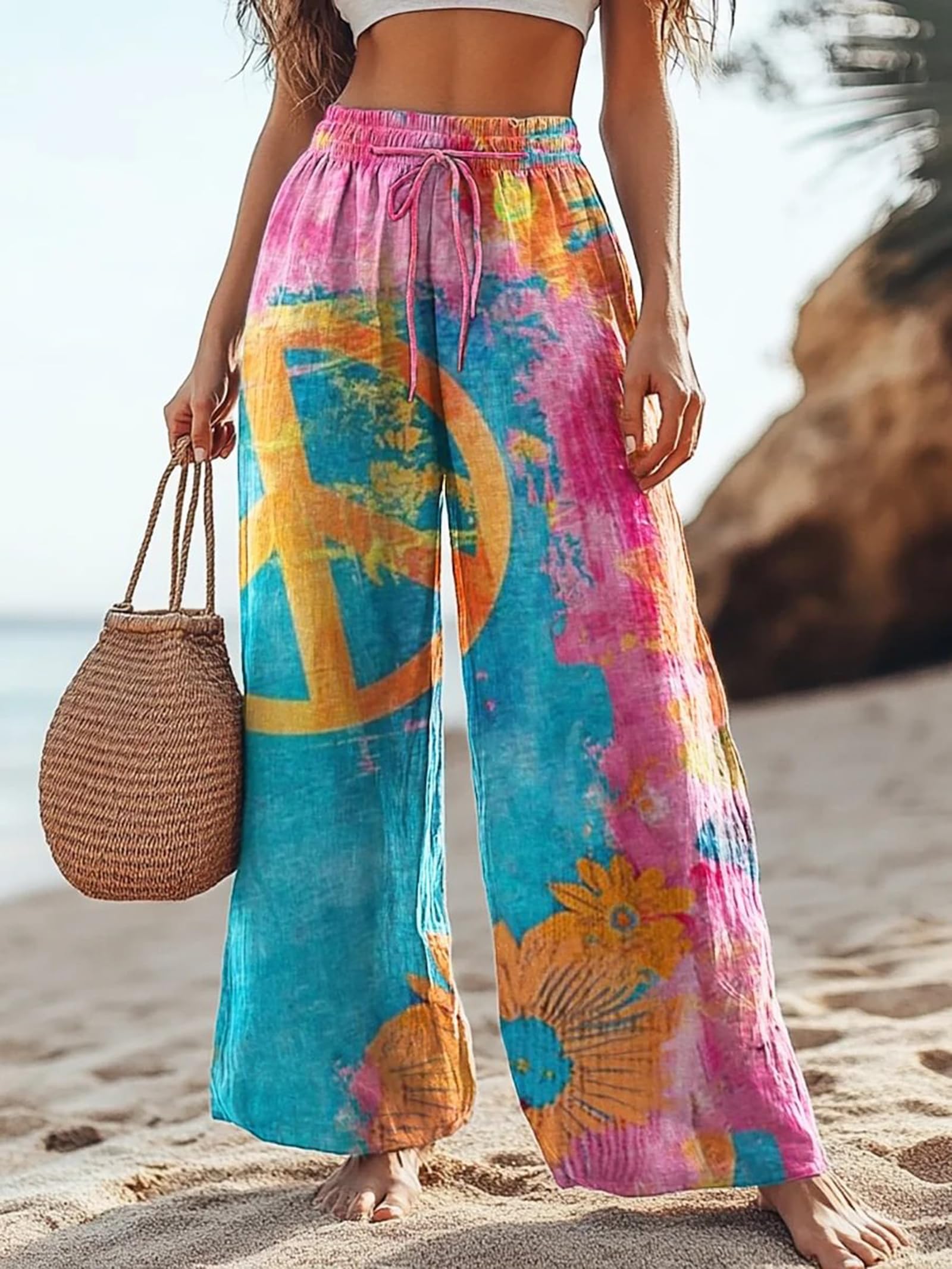 Style: Elastic Waist Pants, High Waisted, Wide Leg, Elastic Waistband, Drawstring, Tie Knot Front, Easy to Pull On, Loose Fitting, Soft Linen Cotton Casual Pants. Easy to Wear and Suitable for Most People.