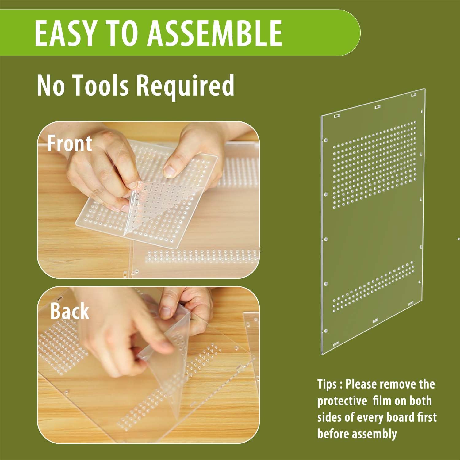 【 DIY Installation & Pro Tip 】 Whether you're a beginner or seasoned keeper, this tall terrarium is incredibly easy to set up and maintain. Designed for tool-free assembly, simply peel off the protective films and connect the parts—no hassle, no fuss
