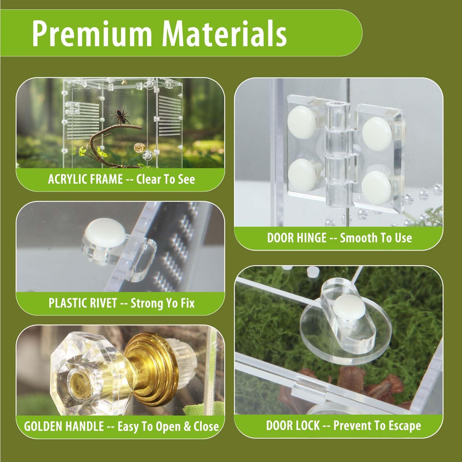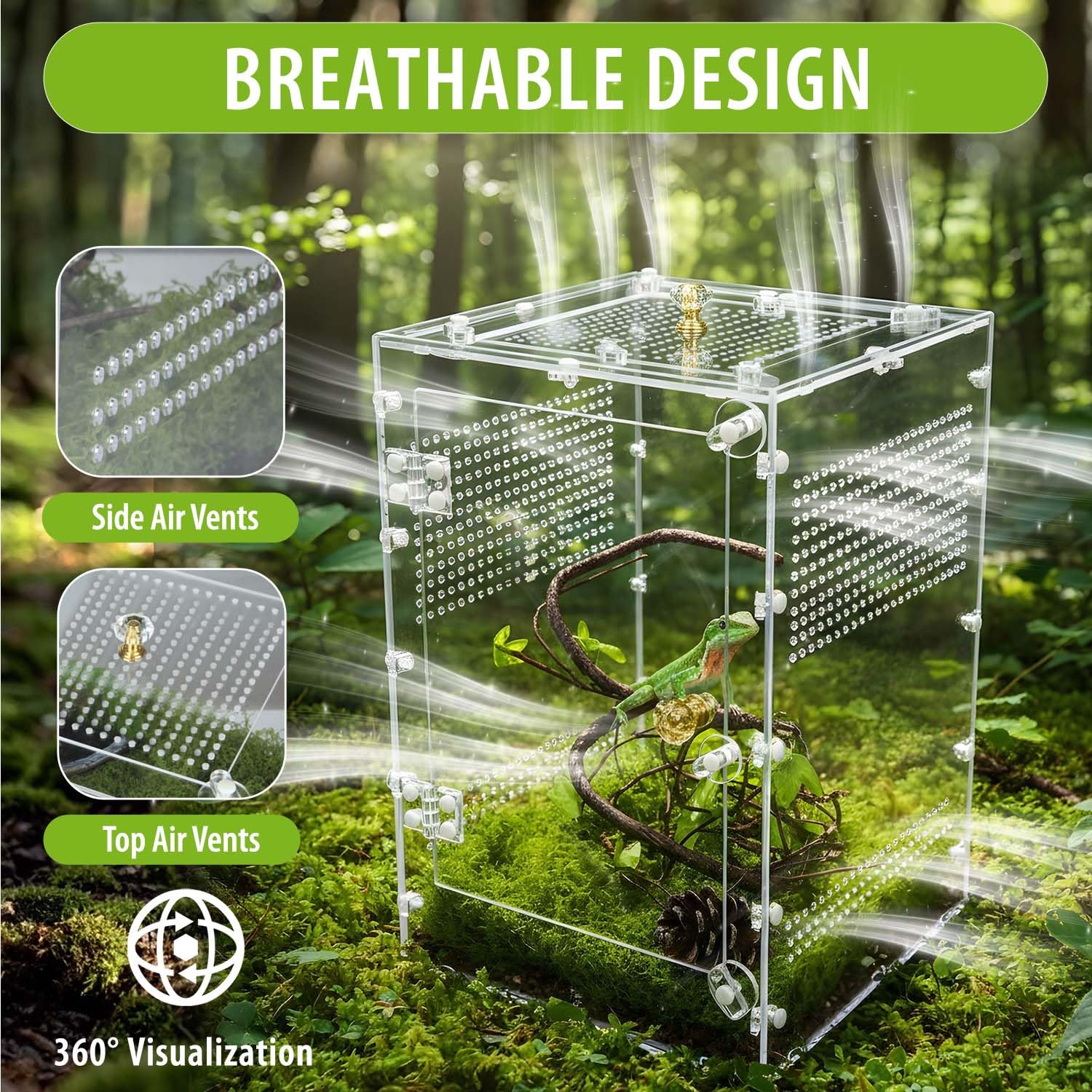 【 Quality Material & Sturdy Structure 】Built with high-quality, tough acrylic that stands the test of time and active inhabitants. The reinforced frame with reliable rivets and sturdy locks makes this a secure and long-lasting reptile cage