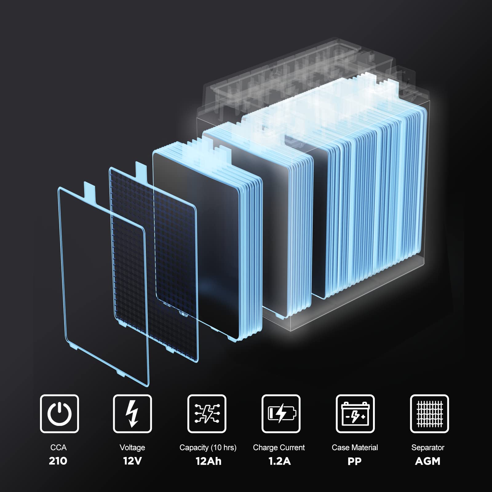 ๐โSafe to use: YTX14AH-BS battery be adopt our patented alloy greatly improves the battery's corrosion resistance and leak-proof performance. Maintenance-free design make battery to use without adding acid and water to ensure your safe use