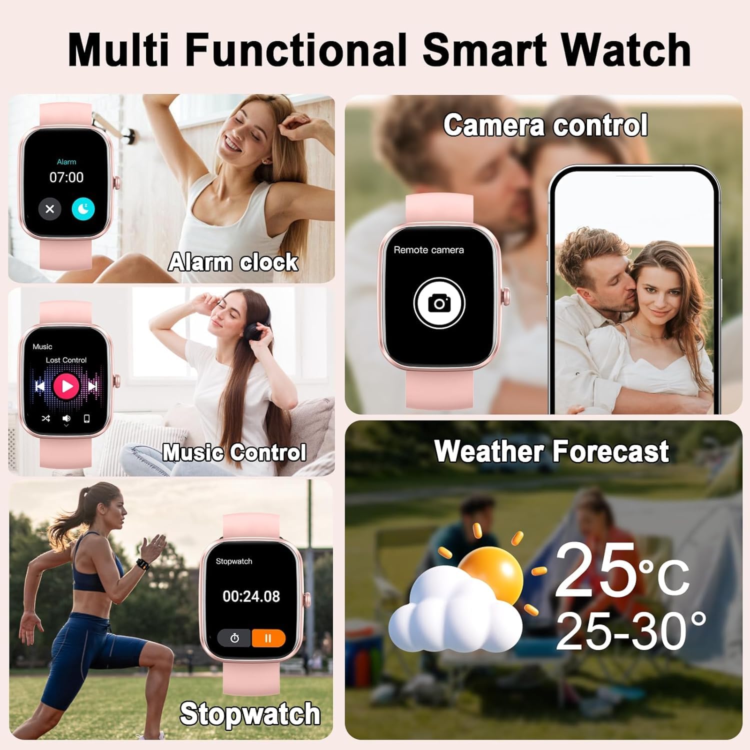 【Comprehensive Health Monitoring with AI-Generated Reports】Track your health more intelligently. This fitness watch continuously monitors your heart rate, blood oxygen (SpO2), sleep quality (light, deep, REM), steps, calories, distance, and even menstrual cycles. What sets it apart is the AI-powered health report function: it analyzes your daily data and provides personalized wellness suggestions to help you better understand your body and improve your lifestyle over time.