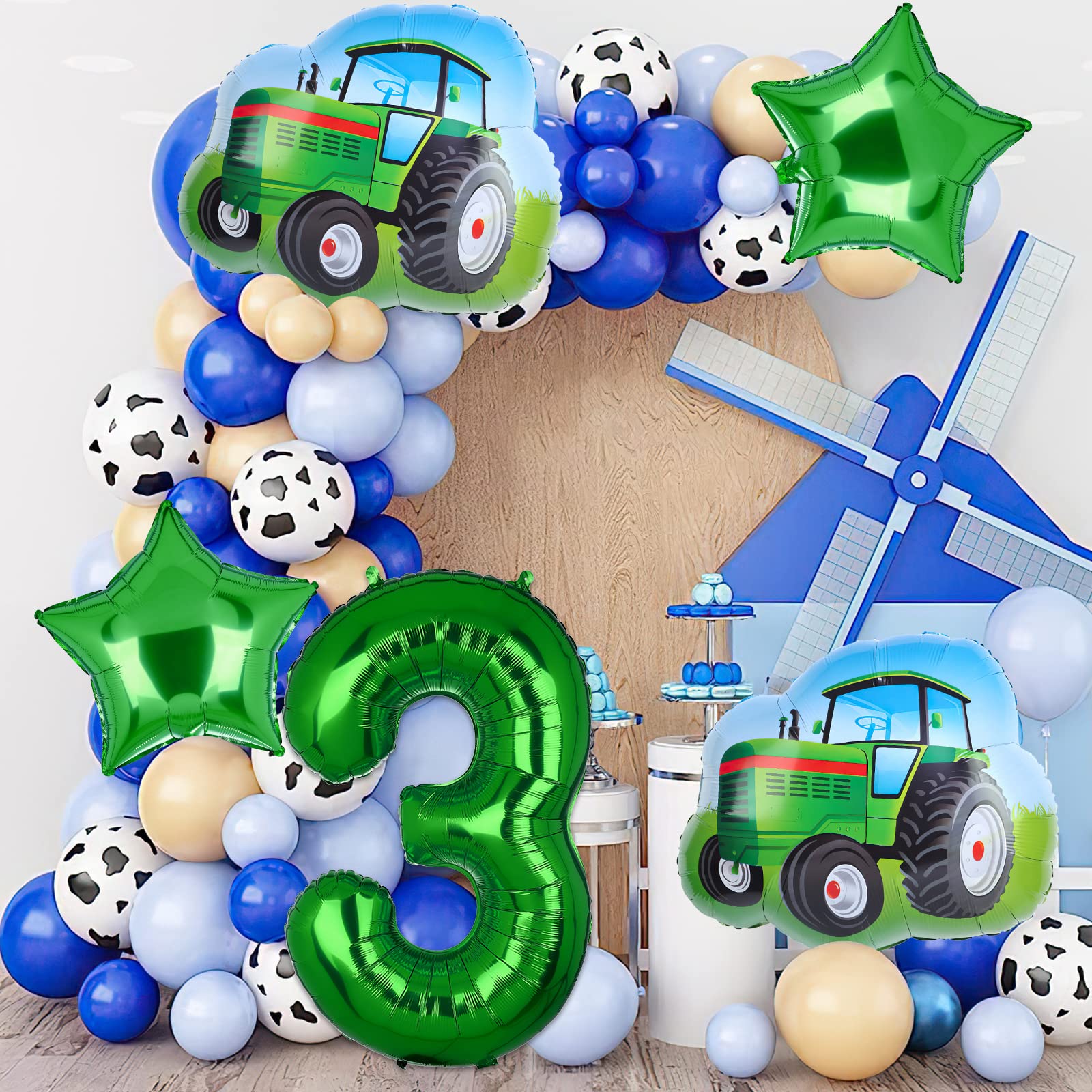 Materials:The tractor balloons are made of high-quality aluminum foil material, the thick material makes it not easy to explode when it's inflated, safe to be used.The kit is very cute decorations for any tractor enthusiast!The big tractor, green balloons are a hit!!
