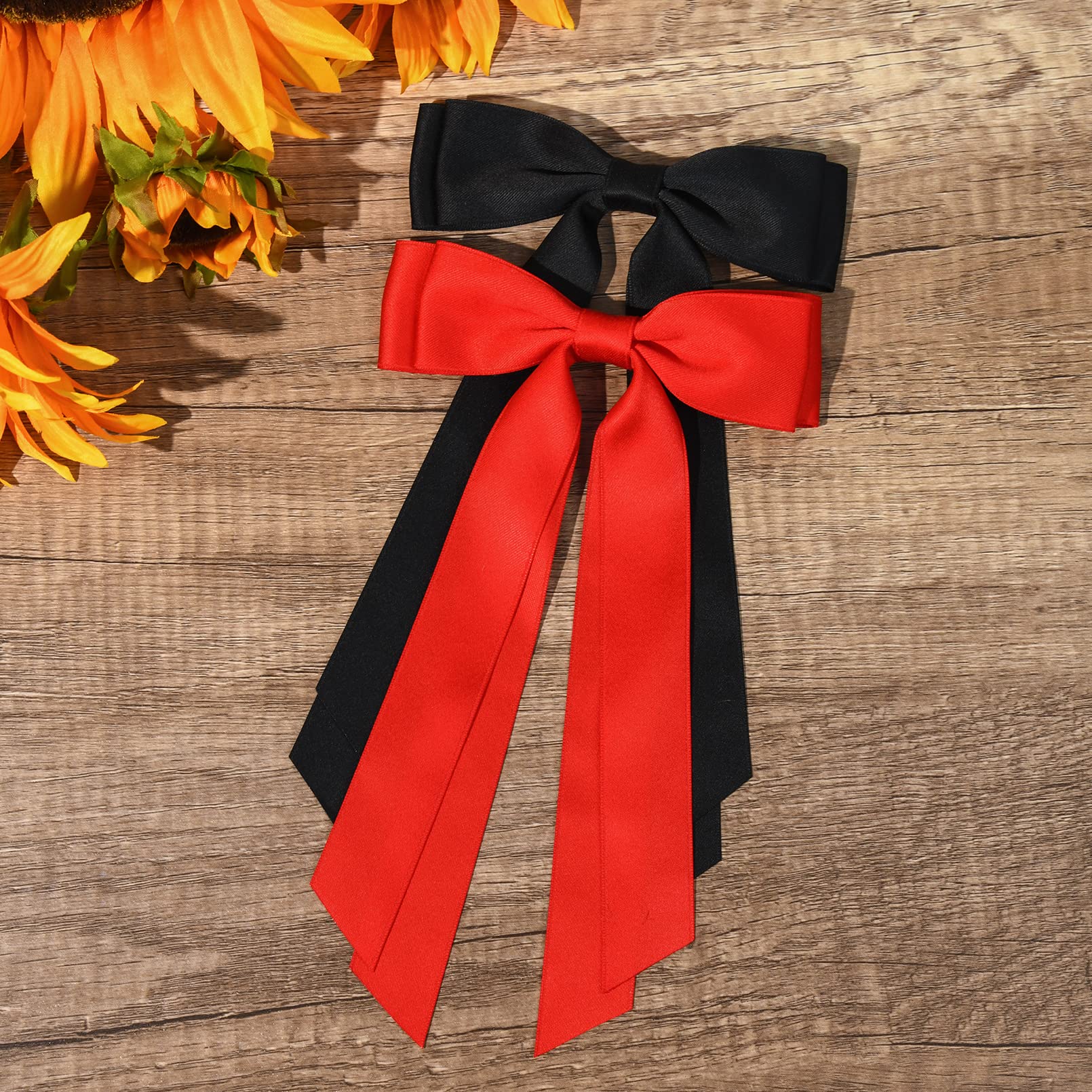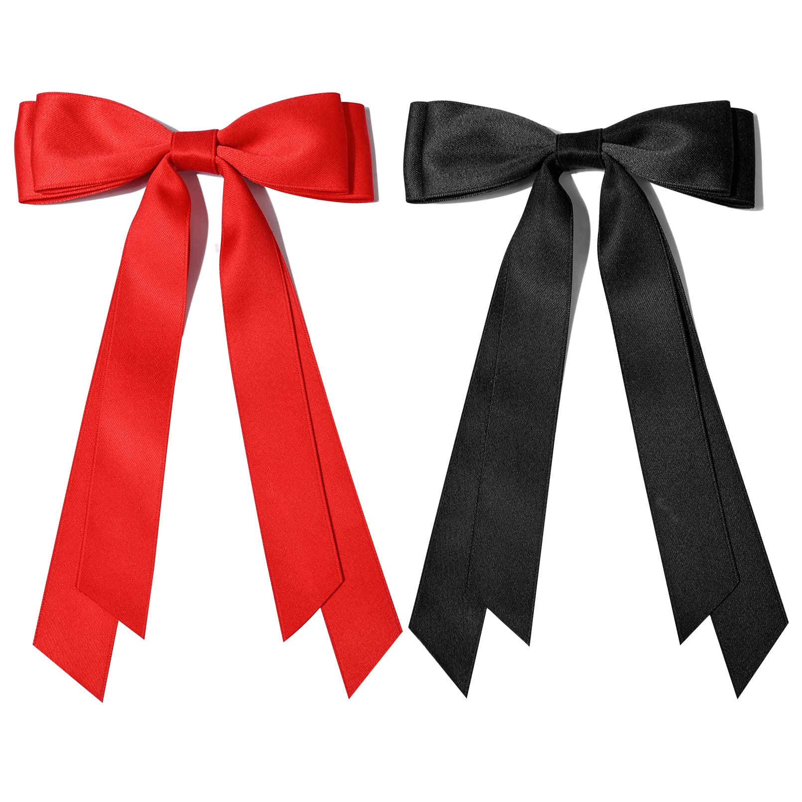 SUPER CUTE HAIR BOWS-- 2pcs Black Red Silky Satin hair bows with different colors to match any of your outfit. These handmade hair bows for little girls suitable for all seasons.