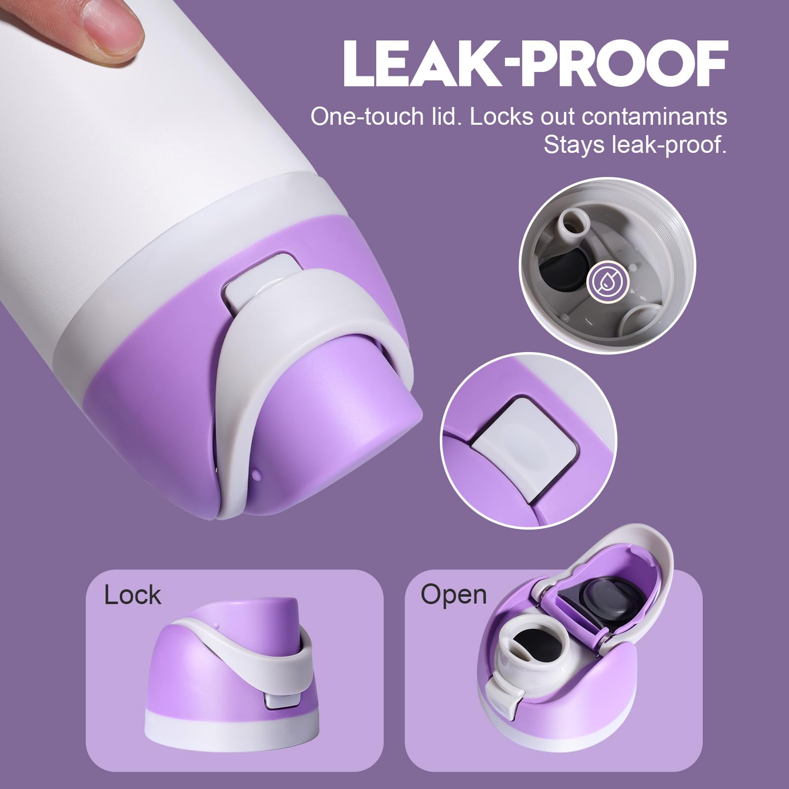 【Leak-Proof Design】Engineered with a precision seal, this lid effectively prevents leaks and spills. The secure closure allows you to confidently carry your bottle in a bag or backpack, ensuring worry-free portability.