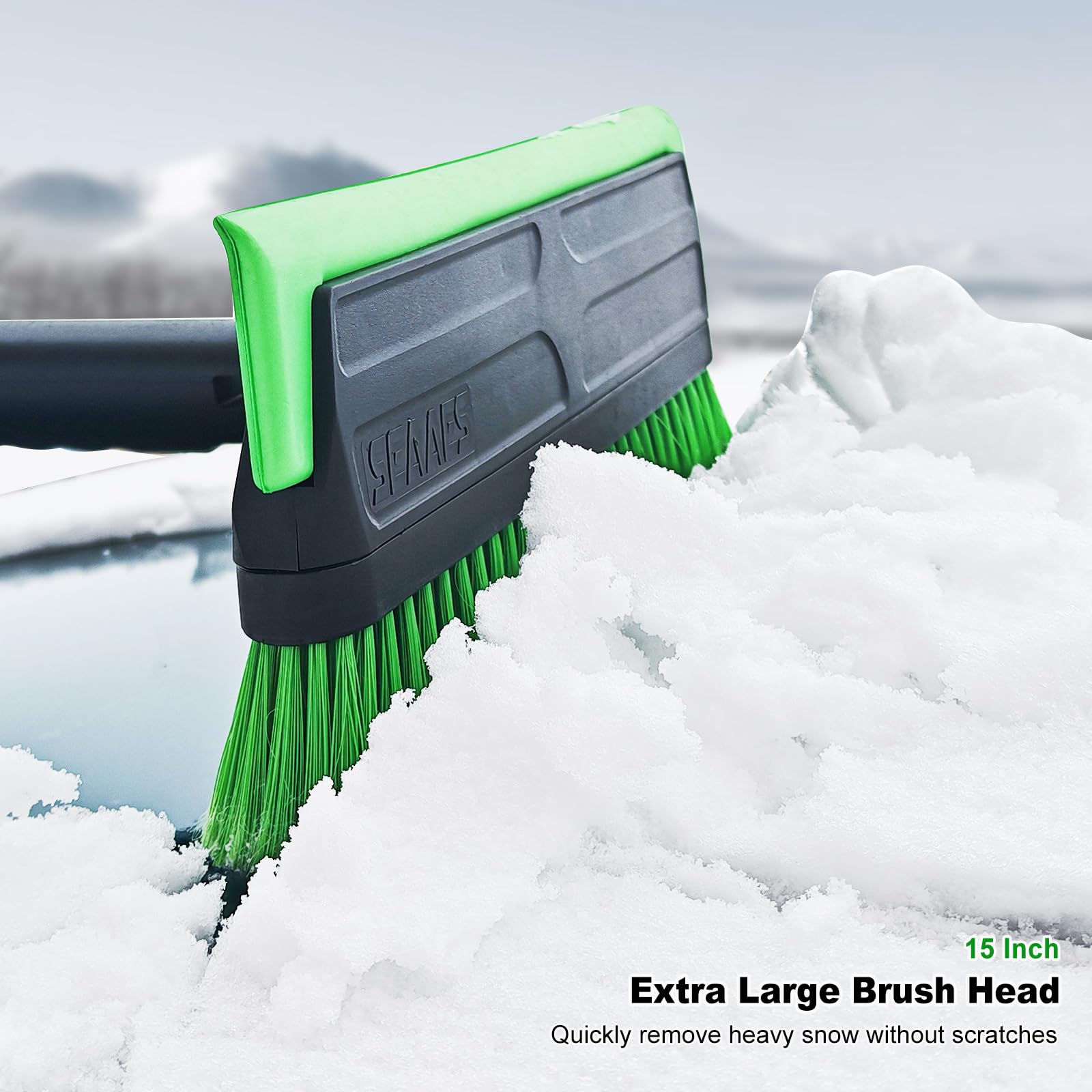 15 Inch Think & Large Brush -- The 15 inch brush is large enough to quickly move a large amount of snow from your car. Saving your time in the mornings when you are rushing to get to work.