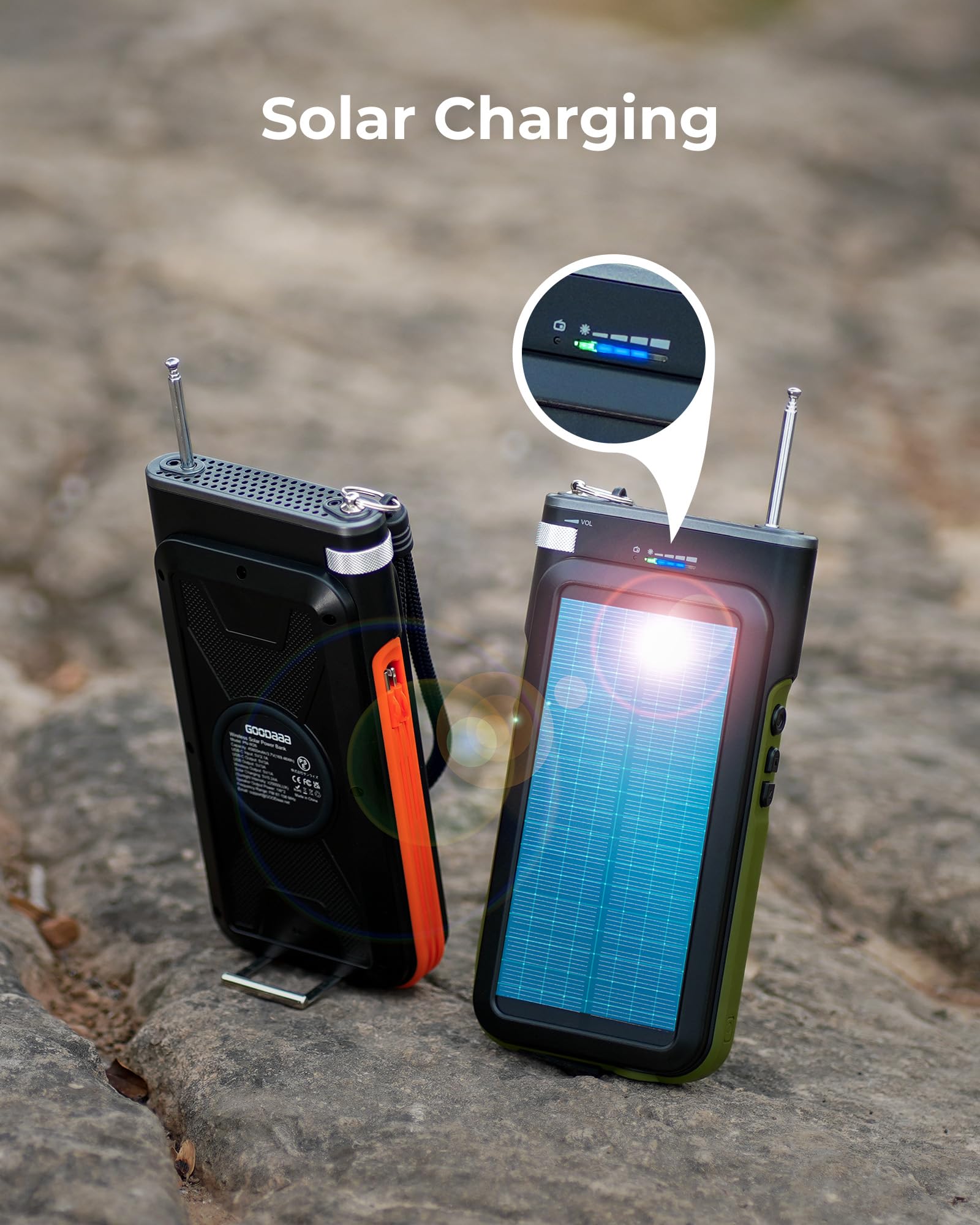 [Unique design in the power bank market]This portable charger power bank is equipped with emergency radio and a bright flashlight.A very practical outdoor emergency tool specially designed by GOODaaa team,ensuring you can enjoy favorite radio stations or stay informed with the latest news,while also providing illumination to keep you away from darkness.