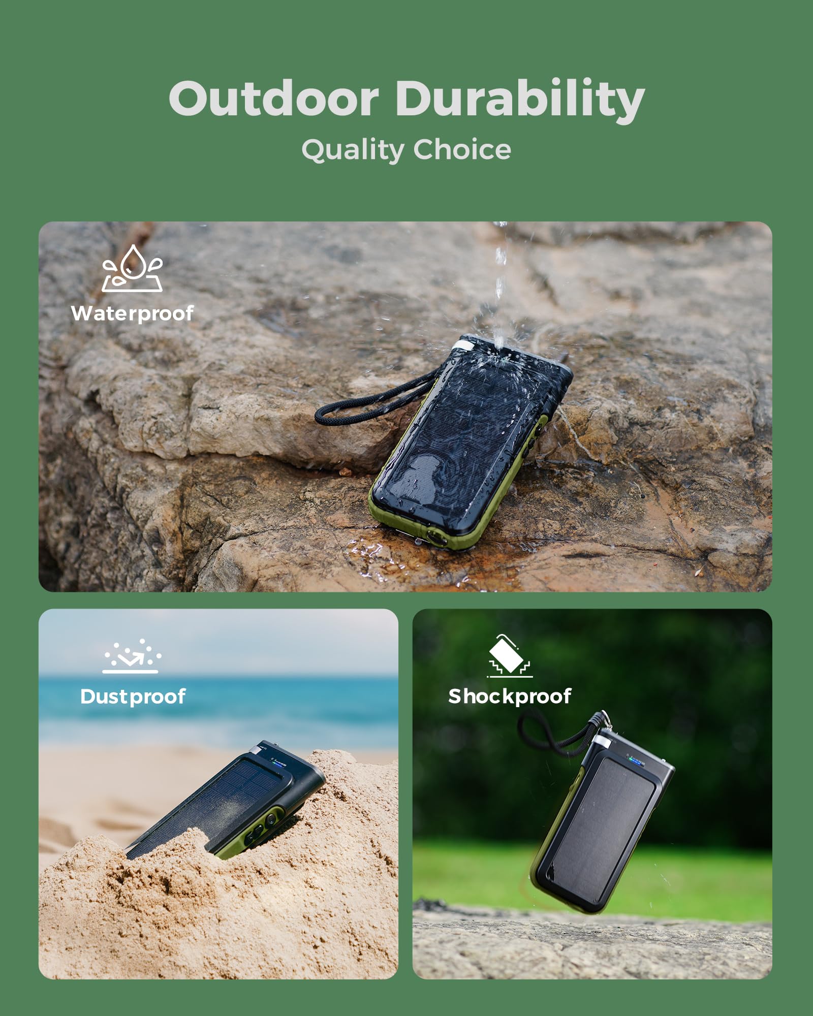 [Advanced Wireless Charging] This solar charger power bank supports advanced wireless charging, compatible with all Wireless-enabled mobile devices. Such as iPhone 16/15/14/13 series, Samsung Galaxy S23/S22/S21 series, etc. Put your device on the wireless charging area, it gets charged immediately. Come and enjoy your cable-free charging time.