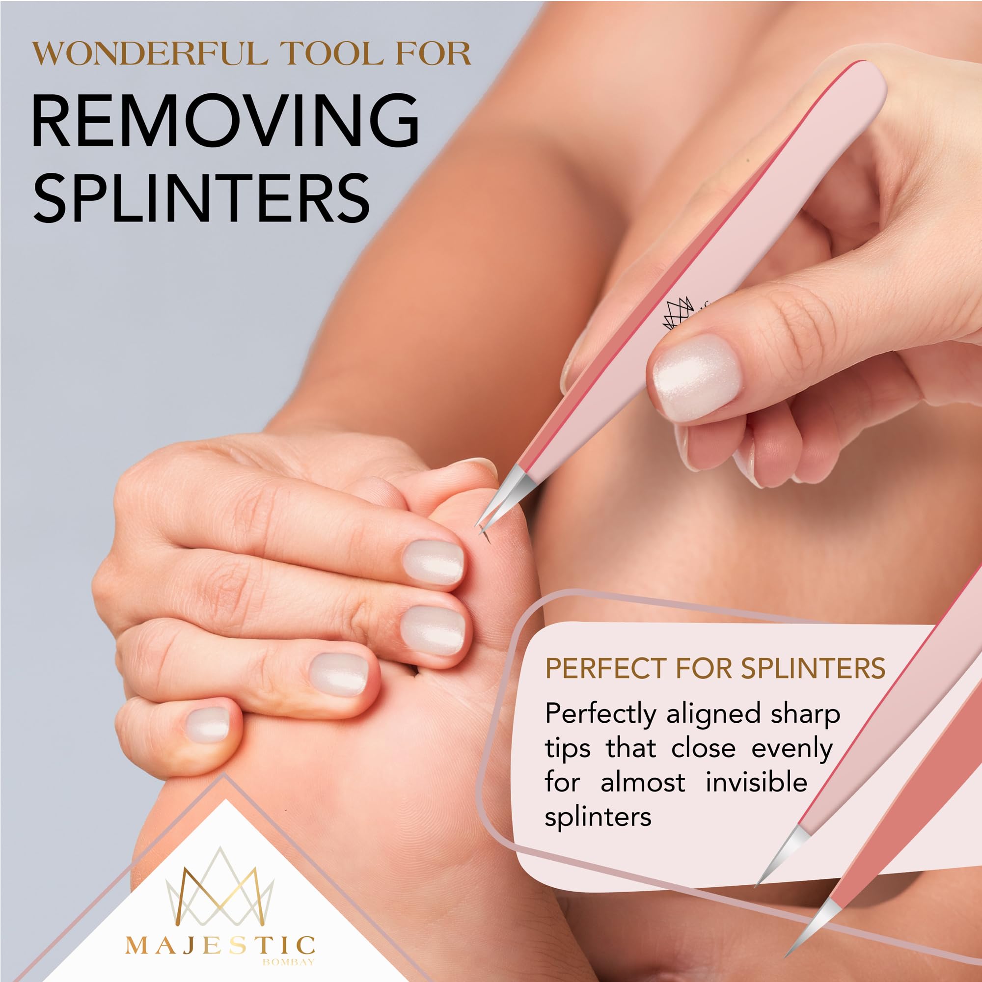 PERFECT FOR SPLINTERS SOLUTION - Are you a magnet for splinters? Do you encounter splinters, debris, thorns, glass, metal, and other things embedded in fingers, hands, feet and legs? These stainless steel tweezers are perfectly aligned, hand filed calibrated and sharp tips that close evenly for smooth maneuvering around almost invisible splinters! You'll feel like an EXPERT