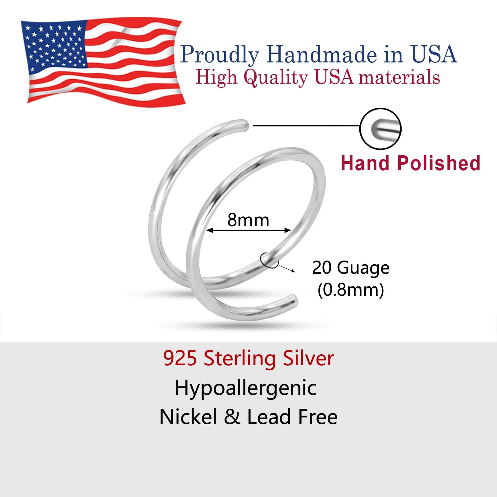 [Handmade in USA]: We proudly gather the finest materials from local sources across the USA, and meticulously handcrafted each gold nose ring or sterling silver nose rings by skilled artisan who have decade of experience.