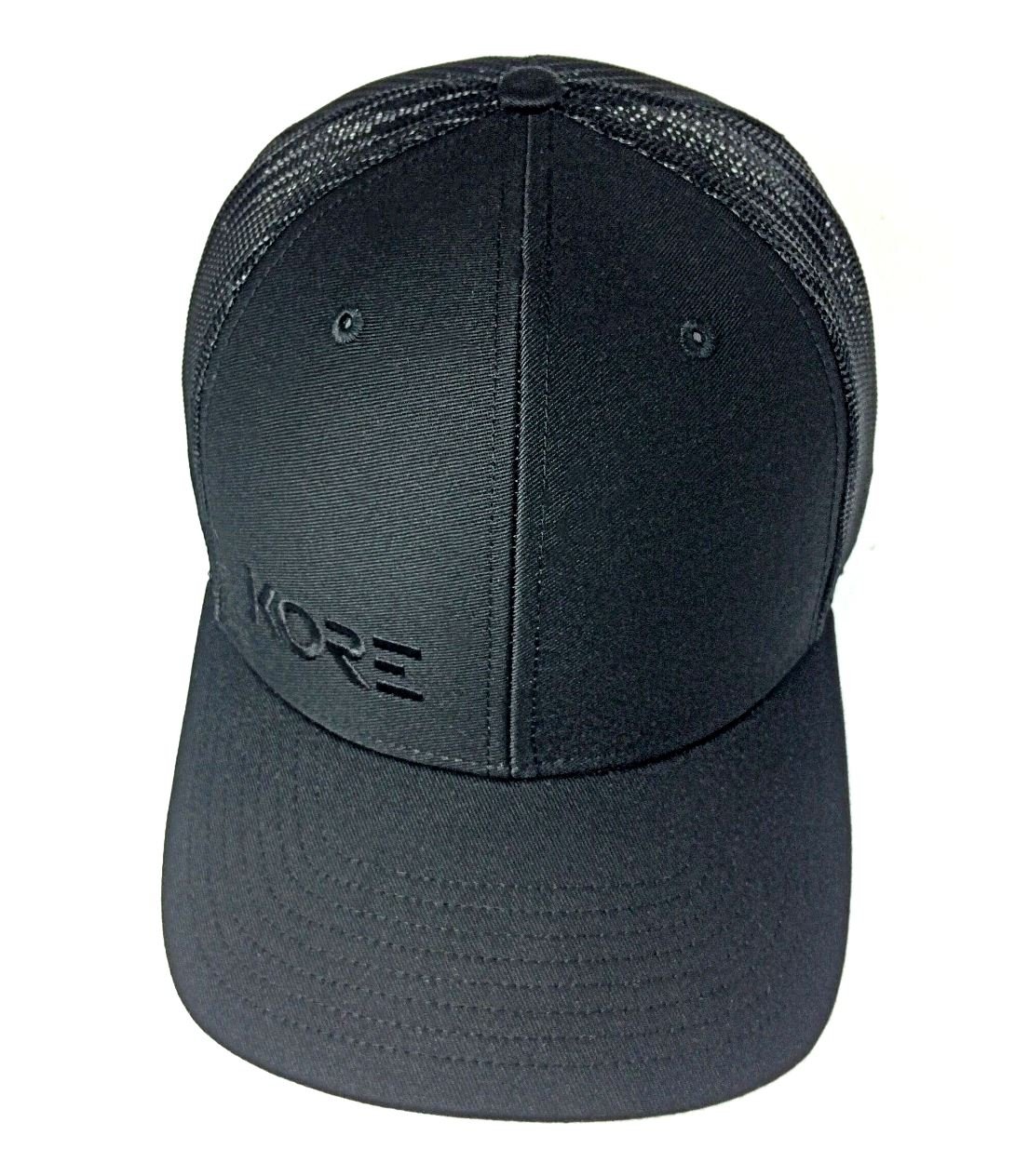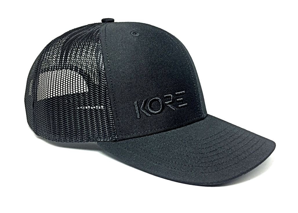 Description Kore Baseball hats feature both Flex Fit or Trucker Style options. Flex Fit hats are cotton twill panels all around and Trucker style hats have 2 solid cotton twill panels in front with mesh rear panels for ventilation. Visors are pre-curved 2.75” length. Kore logo is fully embroidered for style and durability.