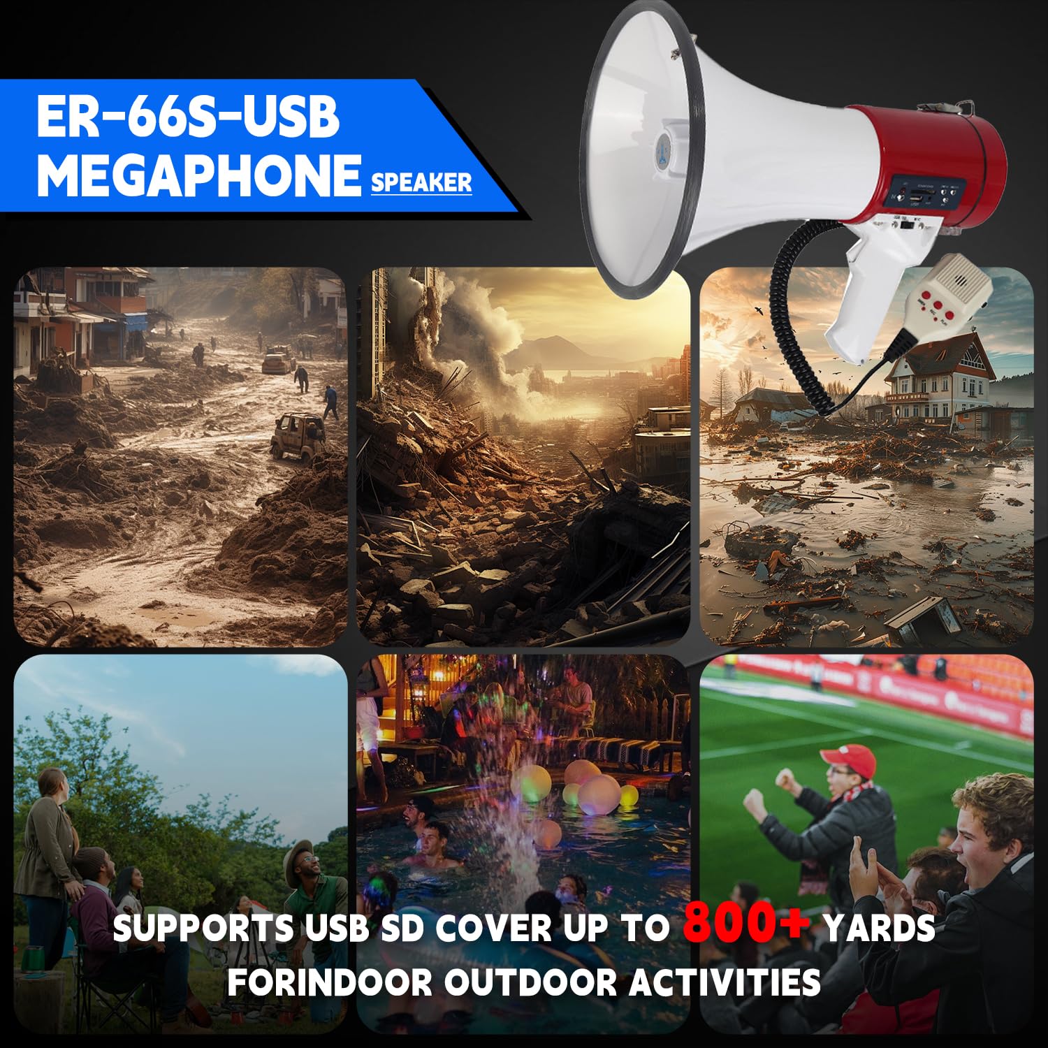 【Powerful Audio】This bullhorn can provide up to 50W and 1200 yard sound, ensuring that your message is projected over a wider area, which is specially designed for group and outdoor activities, such as sports activities, social management and rescue activity.