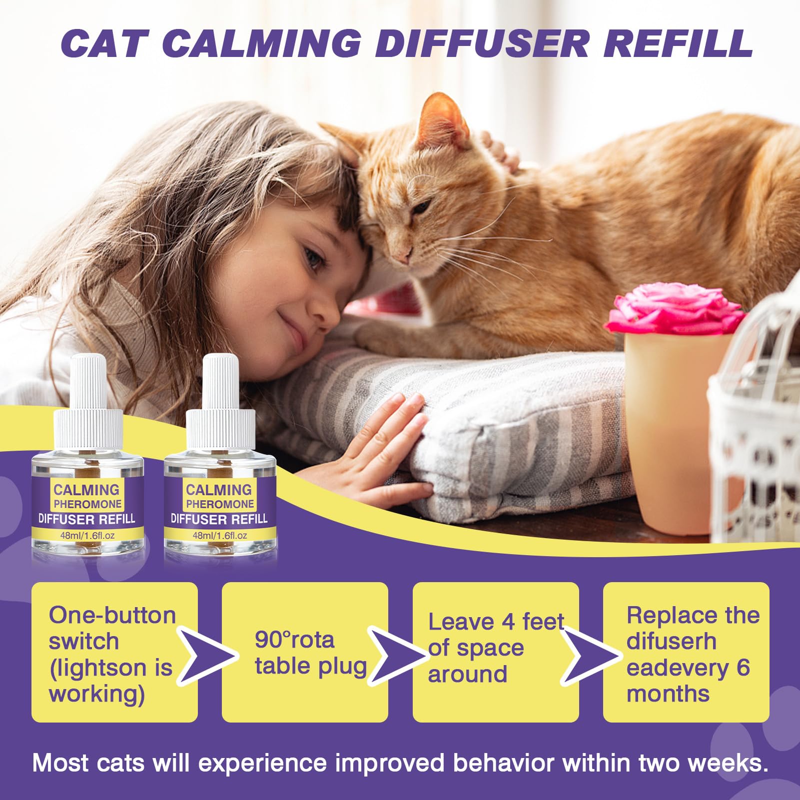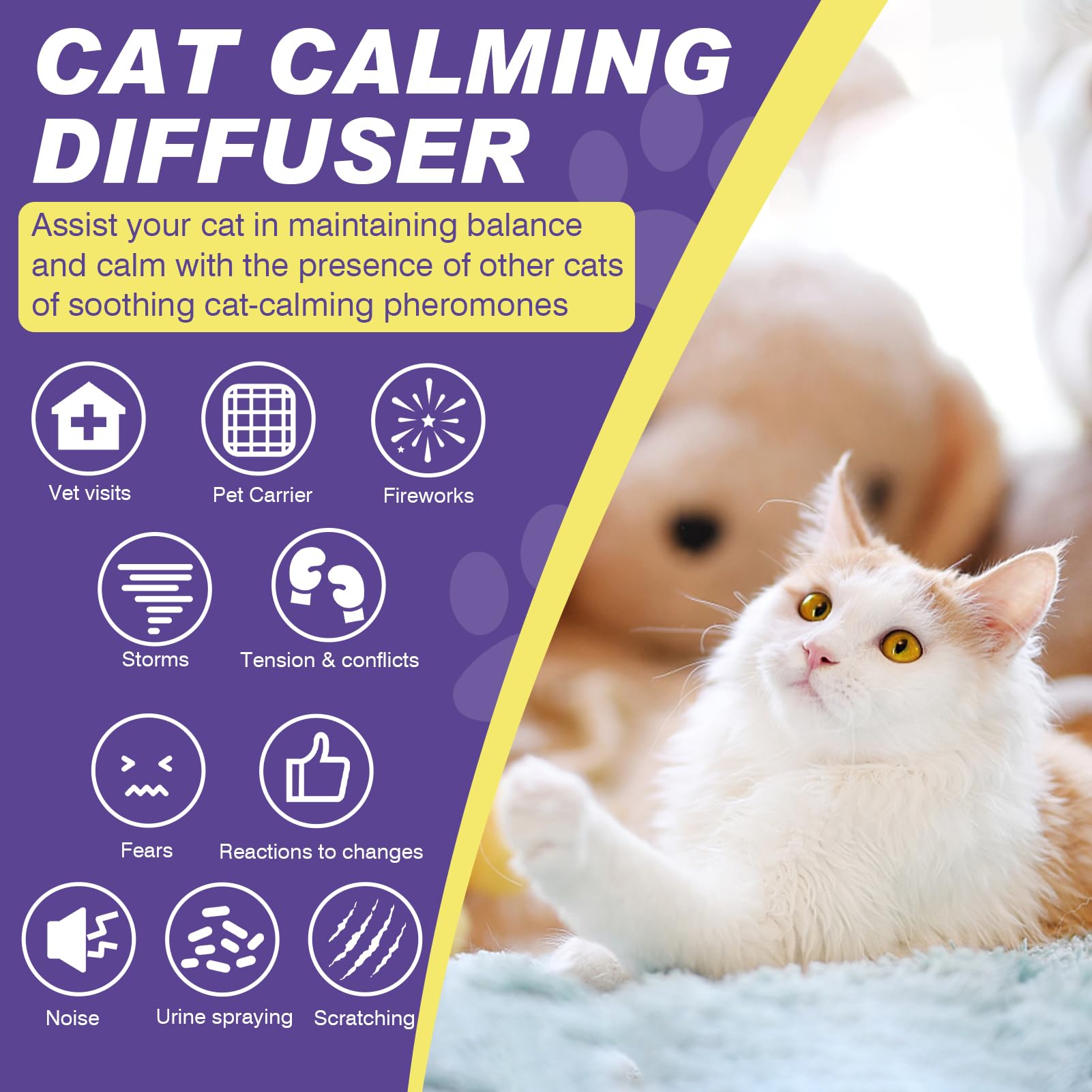Scientifically Proven, Pet Behavior Improvement: Cat diffuser calms your cat by mimicking the female cat's pheromones. Cat calming diffuser can significantly reduce cats' daily stress, scratching, spraying urine, tension and conflict between cats, fear and reaction to change. Calm cat diffuser can help cats establish good living habits. Cat diffusers can continuously release pheromones at the beginning of work. Cat diffuser refill helps cats integrate into challenging environments