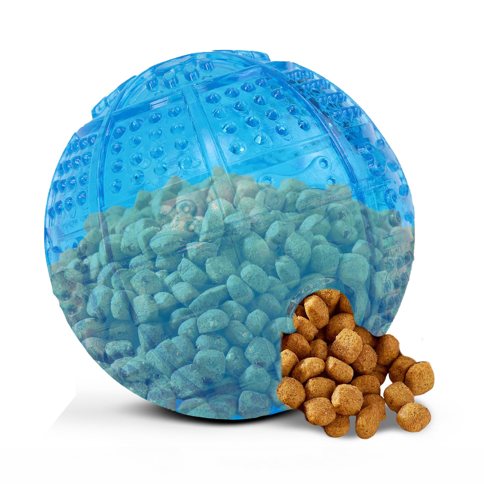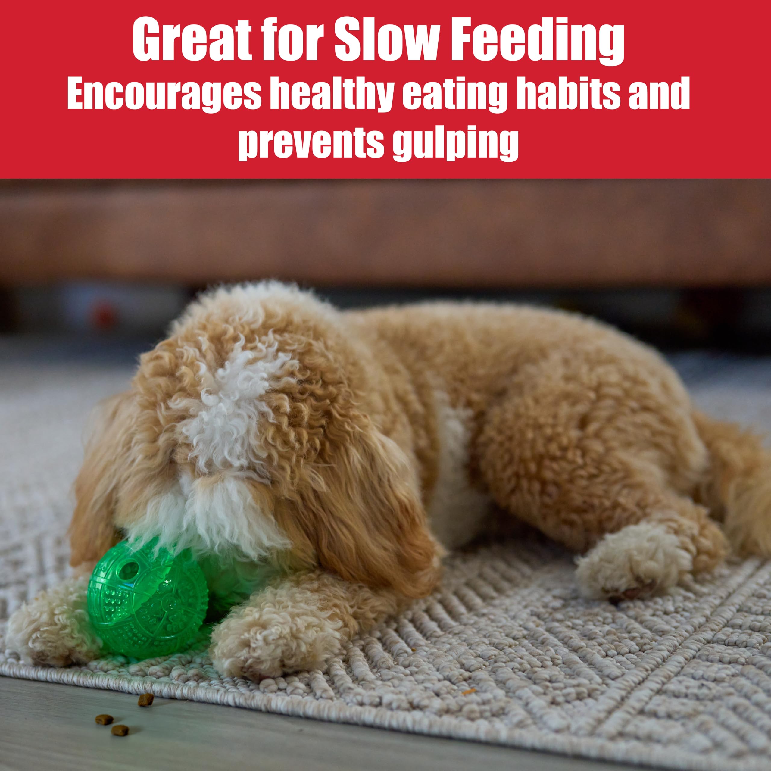 Constructed with an inner maze compartments, fill this ball with treats that will slowly dispense as the ball is rolled and played with to slow down meals