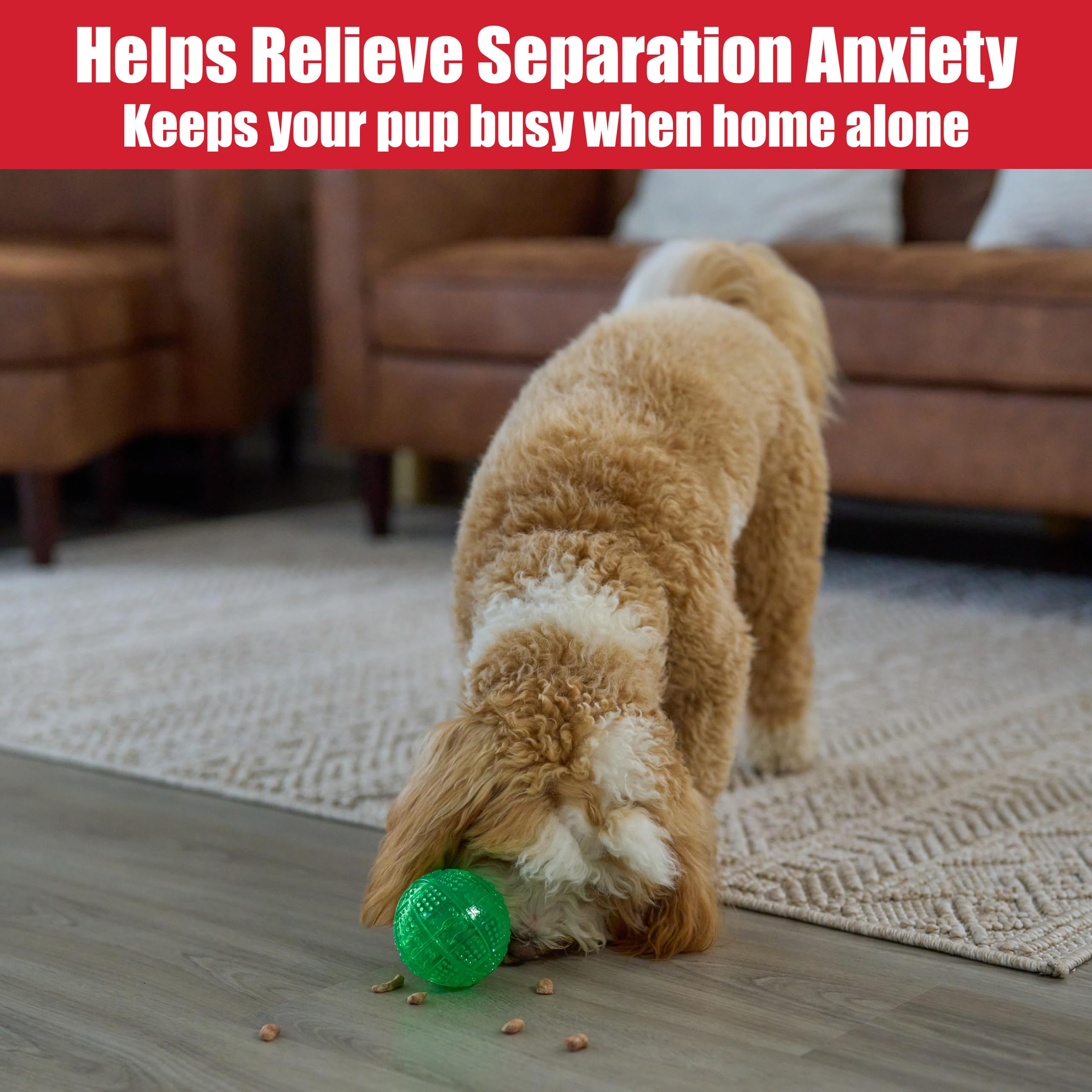 Your dog will love to chase this ball and the mental challenge of getting food out is a great way to prevent boredom in high energy dogs