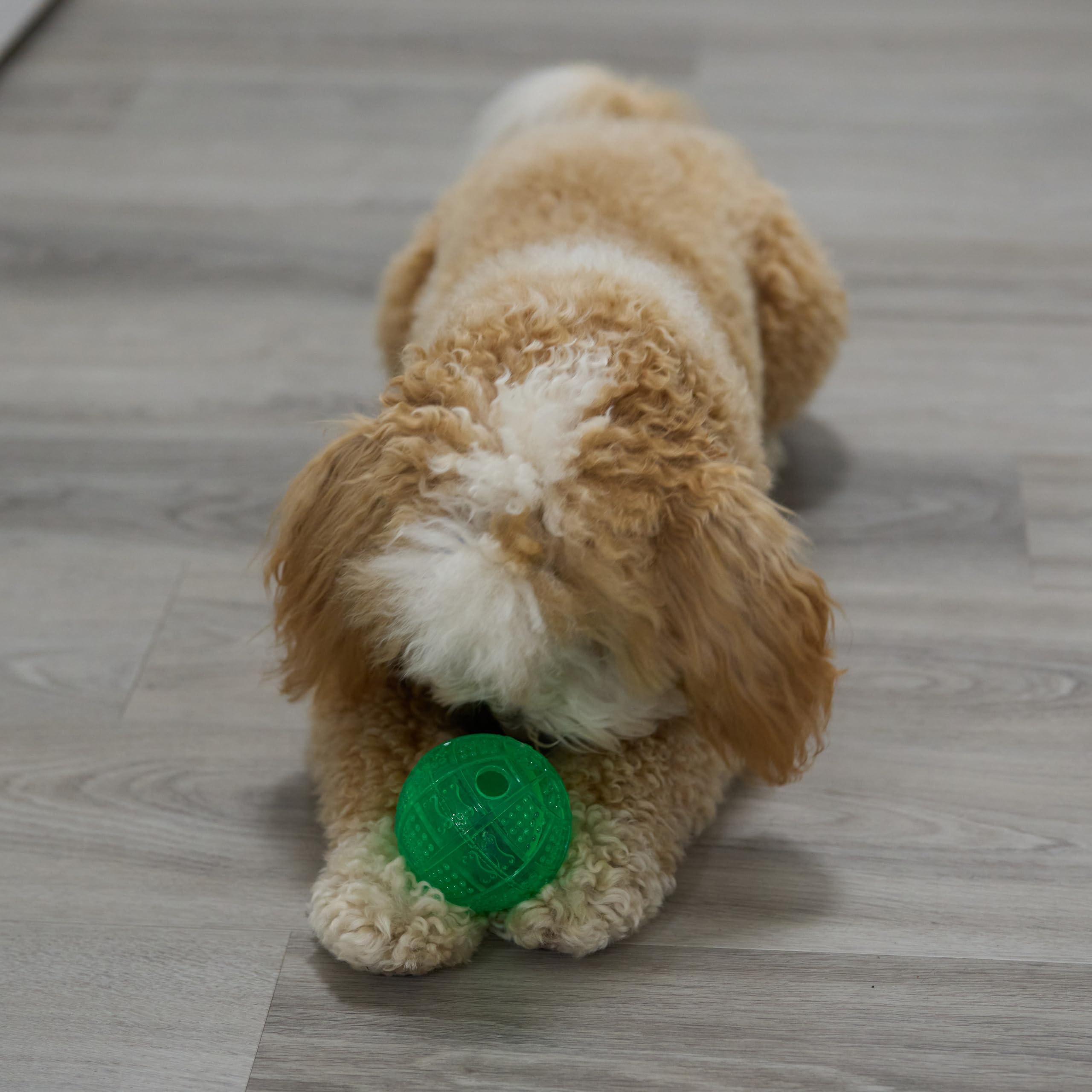 Includes one 3-inch treat ball in one of three bright colors (green, blue, or purple)