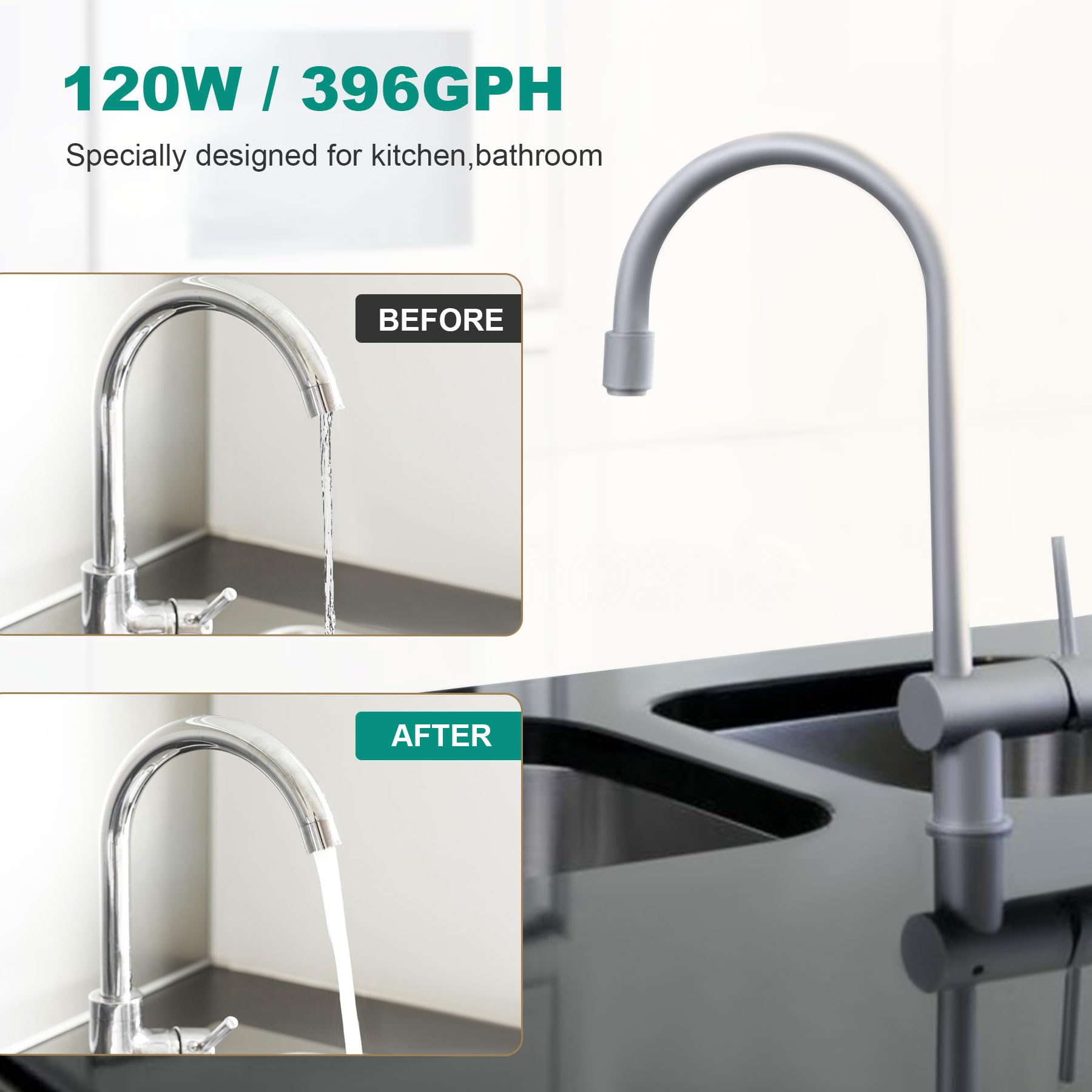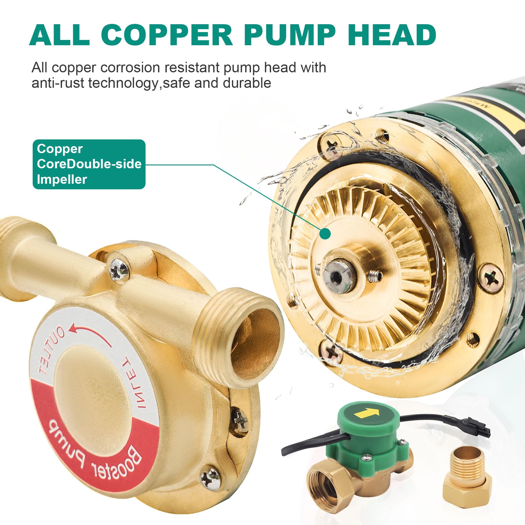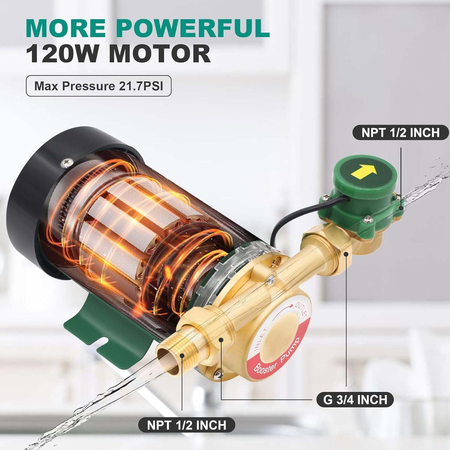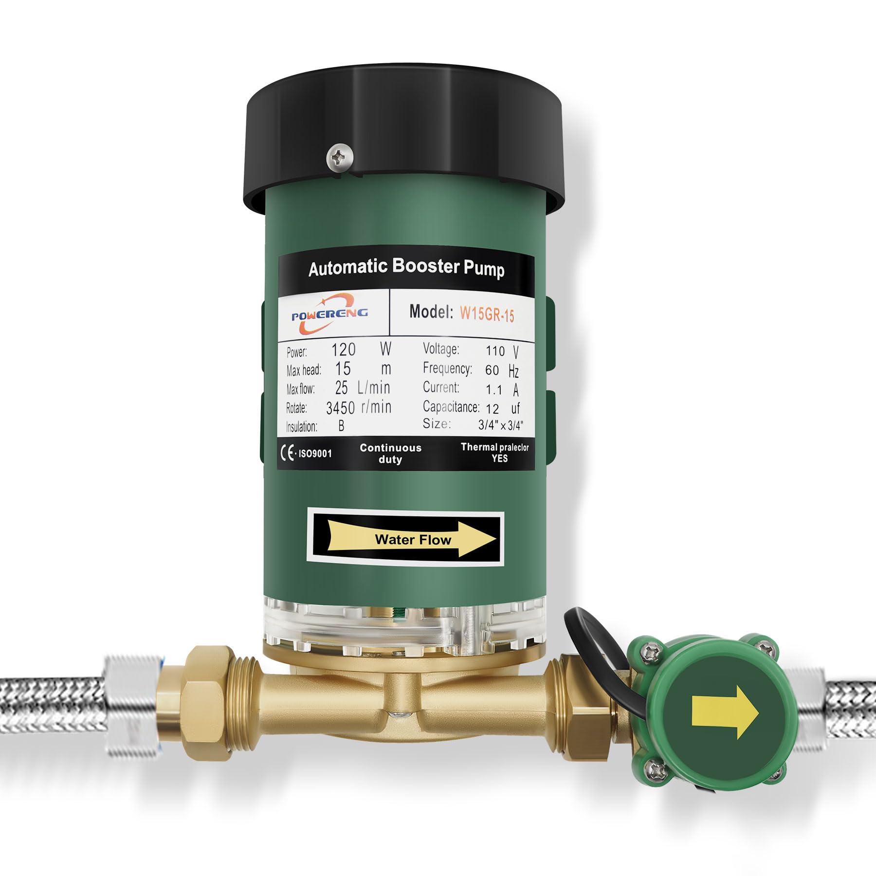 Enjoy strong and consistent water pressure with our powerful 120W motor and high-quality water flow switch. Perfect for pressurizing 2-3 rooms and 3-5 faucets, our pump cycles on and off automatically as you use water.